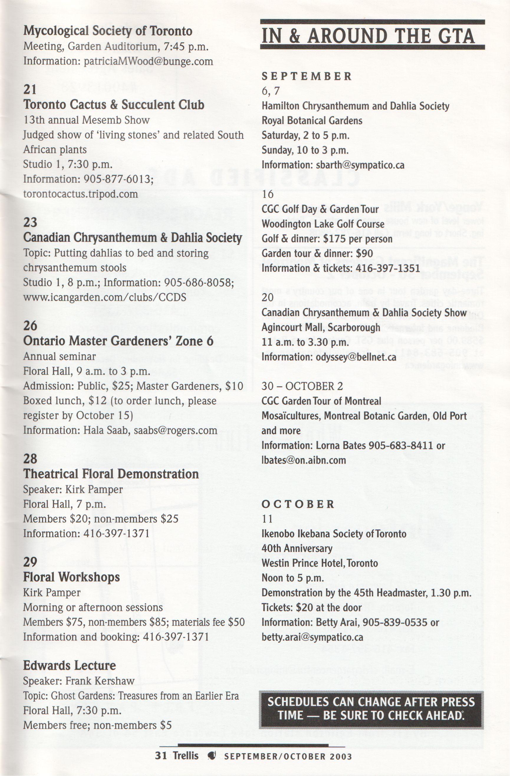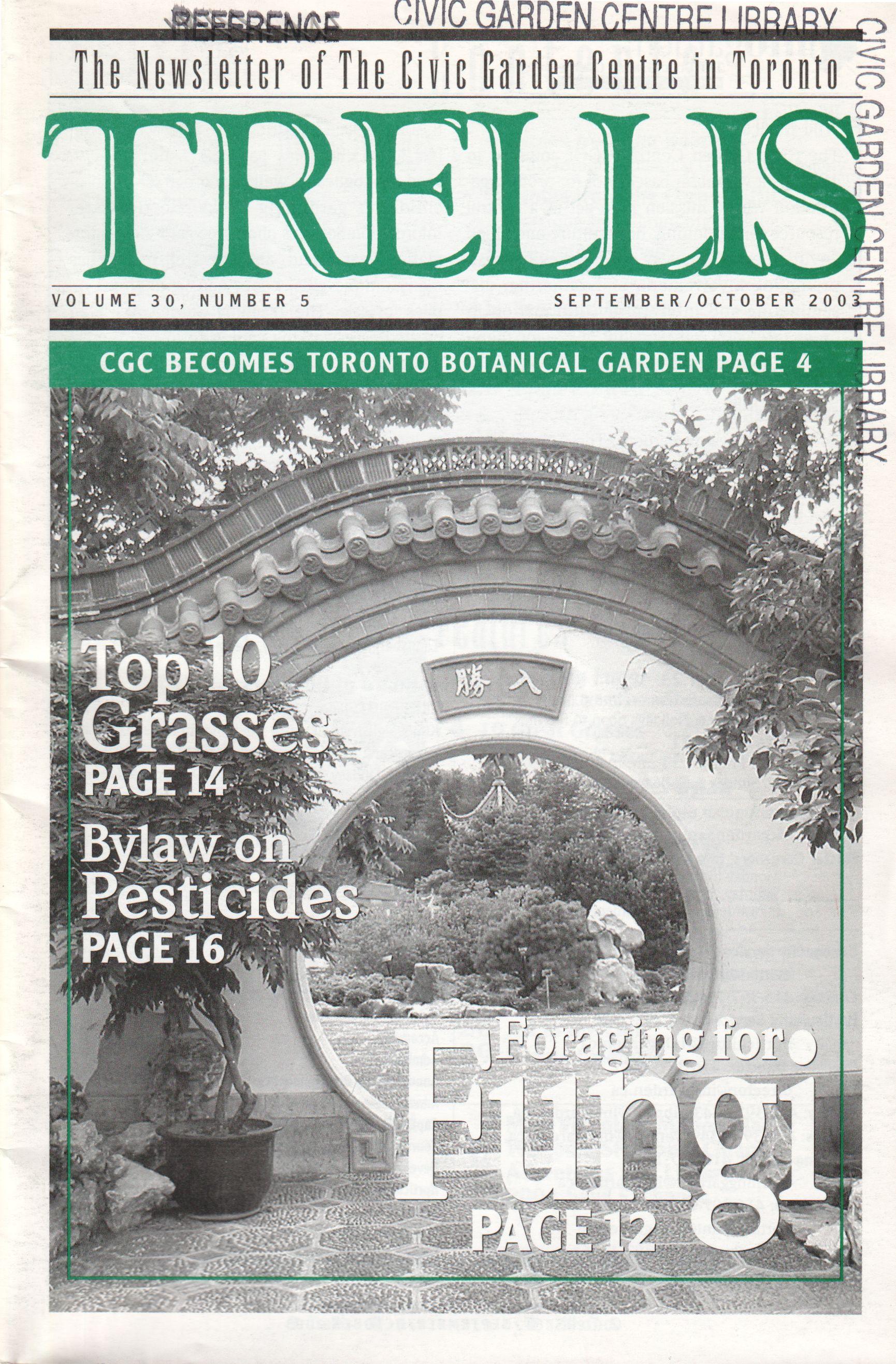 Trellis is published six times a year as a members newsletter by The Civic Garden Centre at Edwards Gardens. 777 Lawrence Avenue East, Toronto, Ontario M3C 1P2, 416-397-1340.