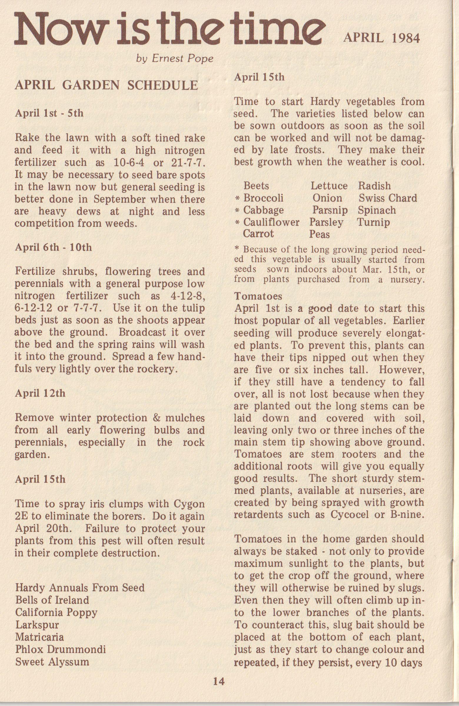 Time to spray iris clumps with Cygon 2E to eliminate the borers. Do it again April 20th. Failure to protect your plants from this pest will often result in their complete destruction.