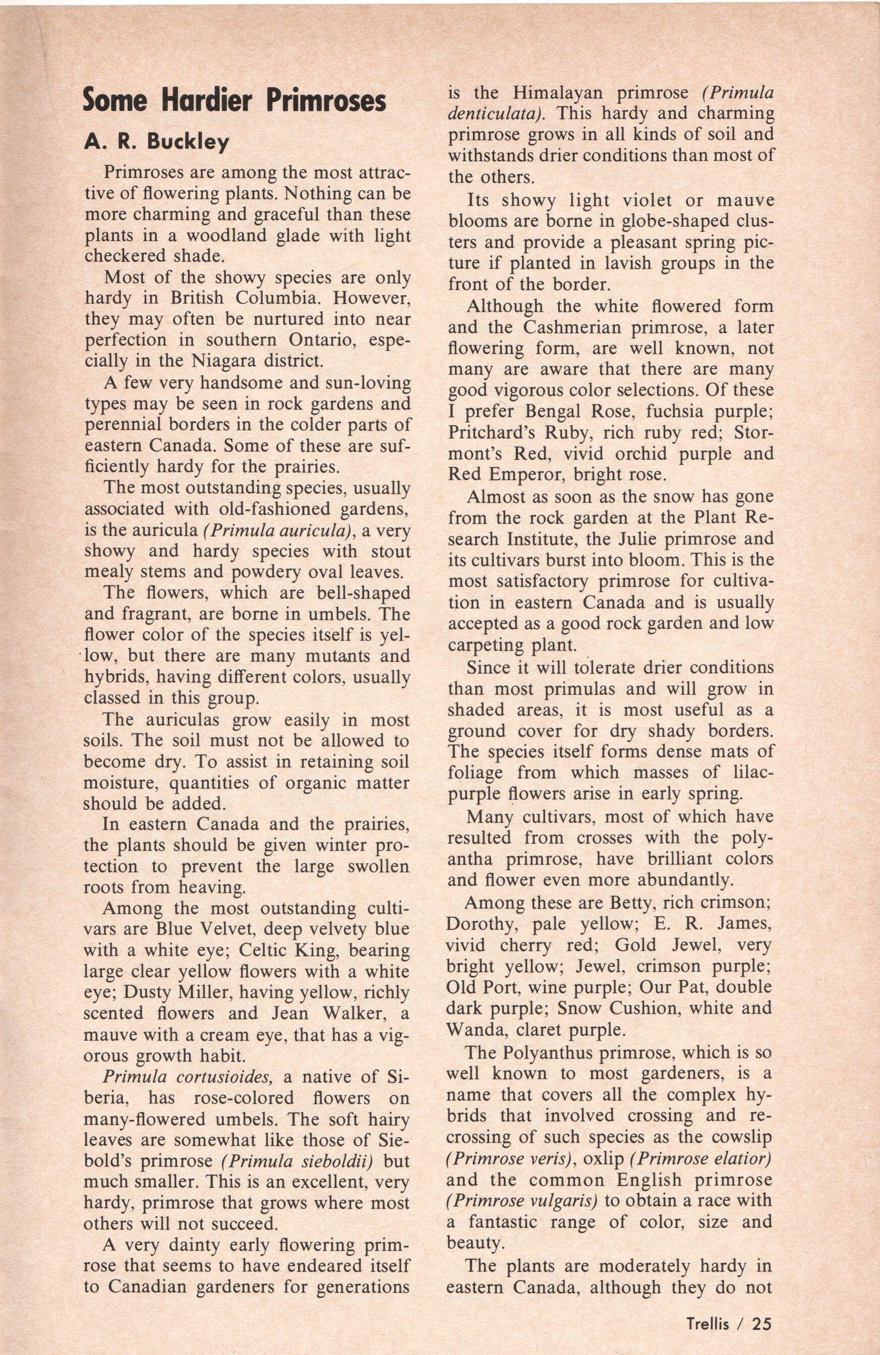 % 7 Trellis is published in the months of March, April, May, June, September and November and distributed on or about the 15th of the month previous by the Civic Garden Centre, 777 Lawrence Avenue East, Don Mills, Ontario M3C 1P2. The centre is located in Edwards Gardens, at Leslie Street and Lawrence Avenue East, the geographical centre of Metropolitan Toronto. It is a non-profit gardening and floral arts information organization with open membership. Subscriptions to Trellis are only available through Centre membership ($5 per year). Opinions expressed within do not necessarily reflect those of the Centre. This is Volume 3, Number 1.