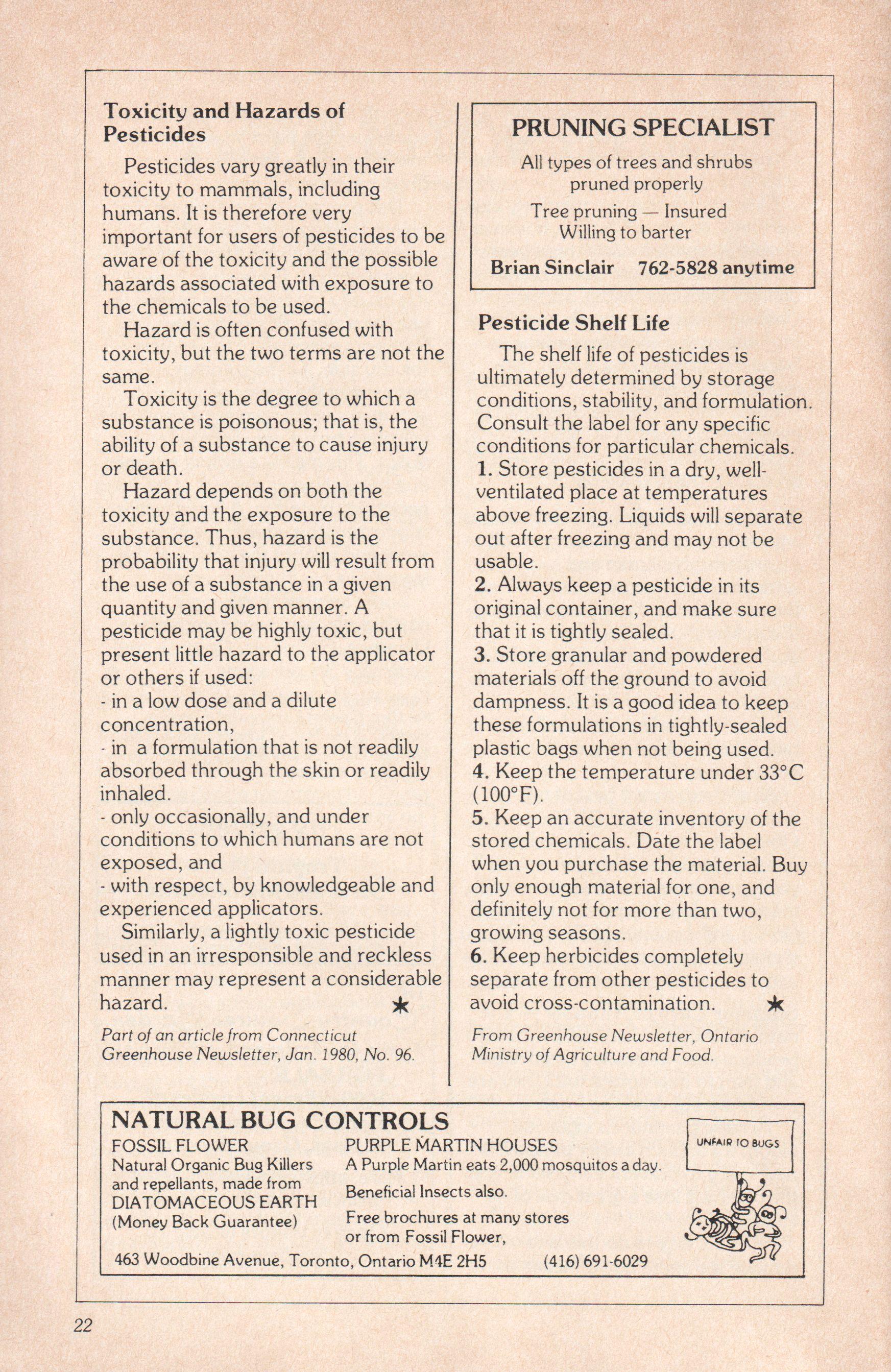 Free brochures at many stores or from Fossil Flower, 463 Woodbine Avenue, Toronto, Ontario M4E 2H5