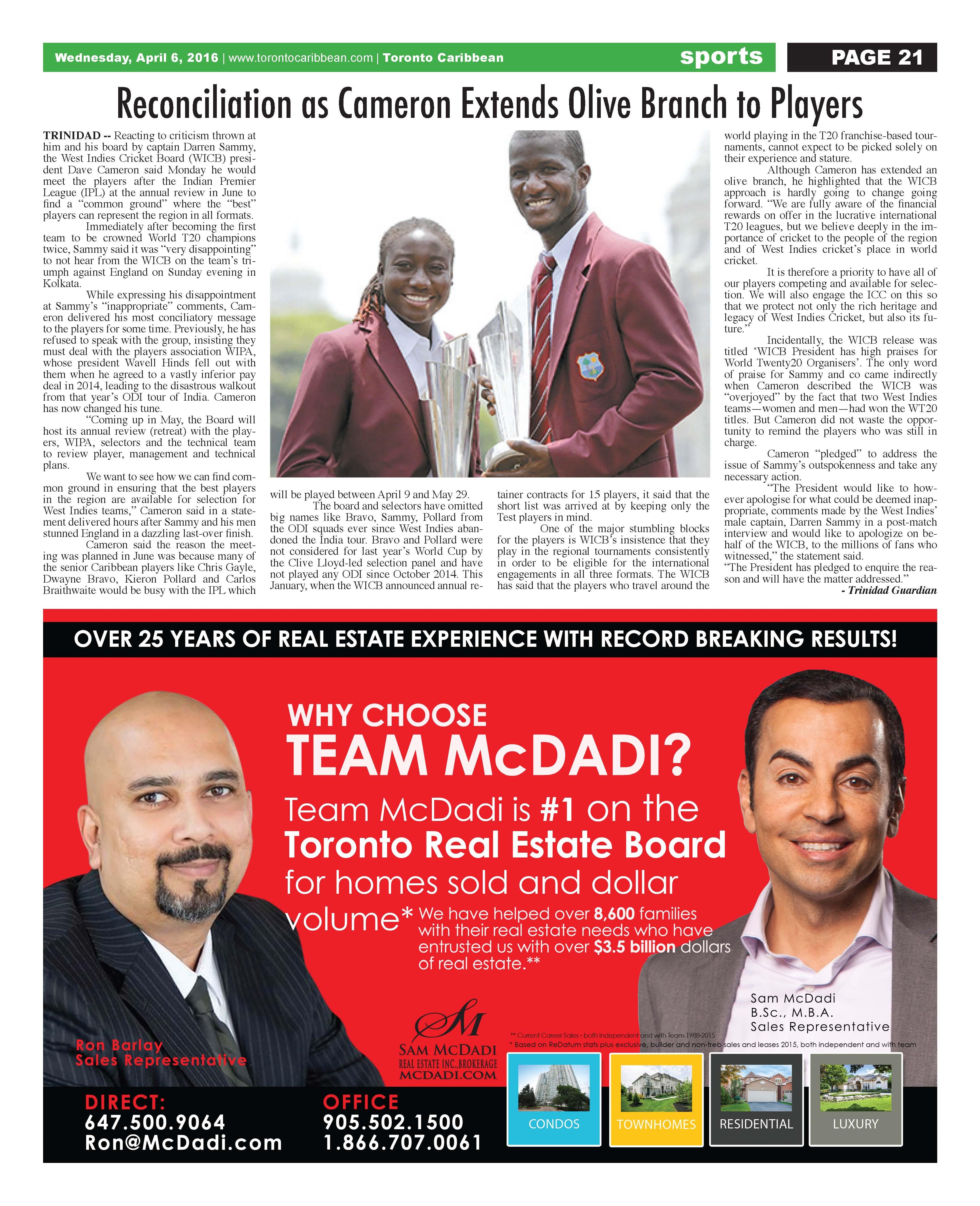 April 6 2016 - Toronto Caribbean Newspaper by Toronto Caribbean Newspaper - Issuu