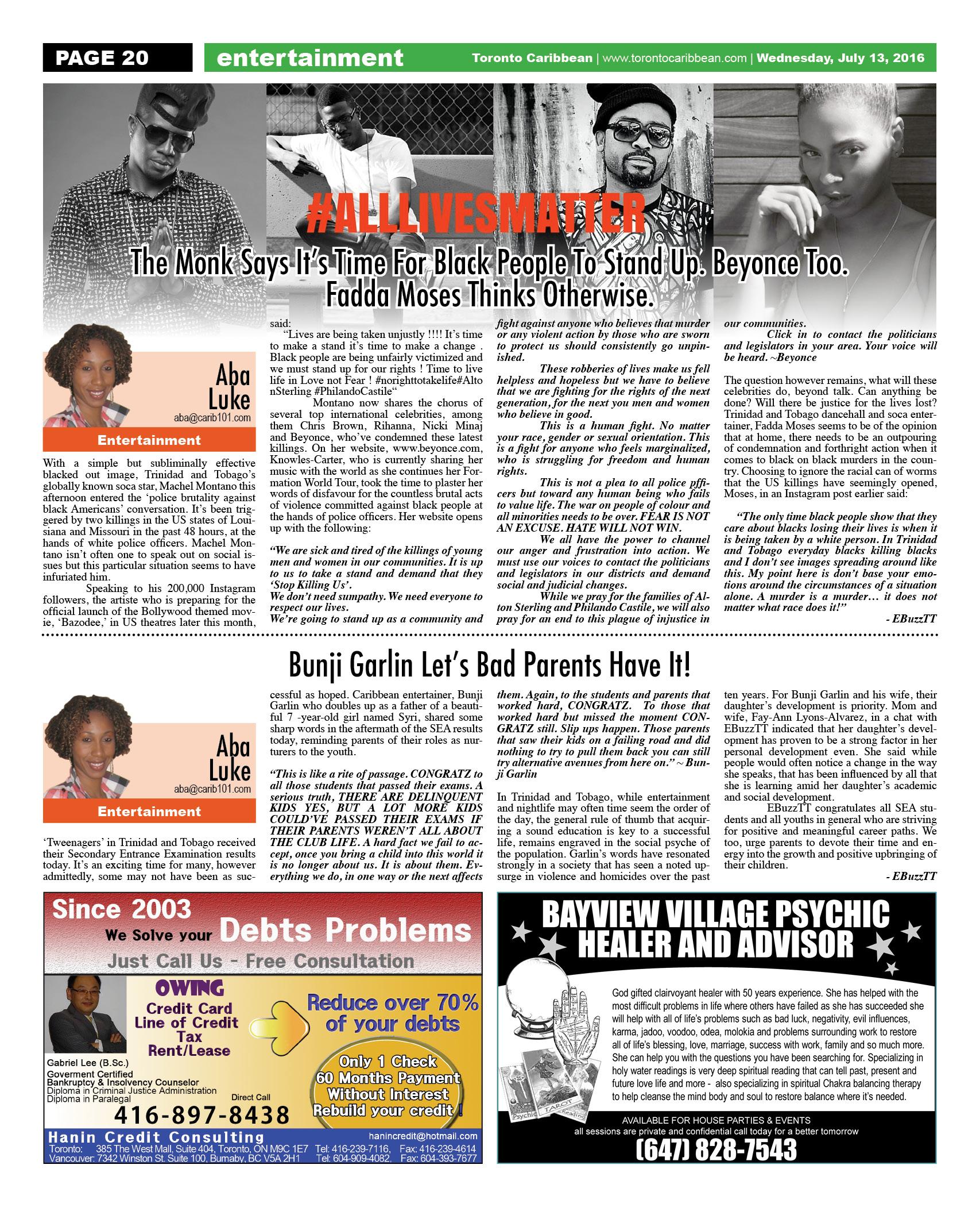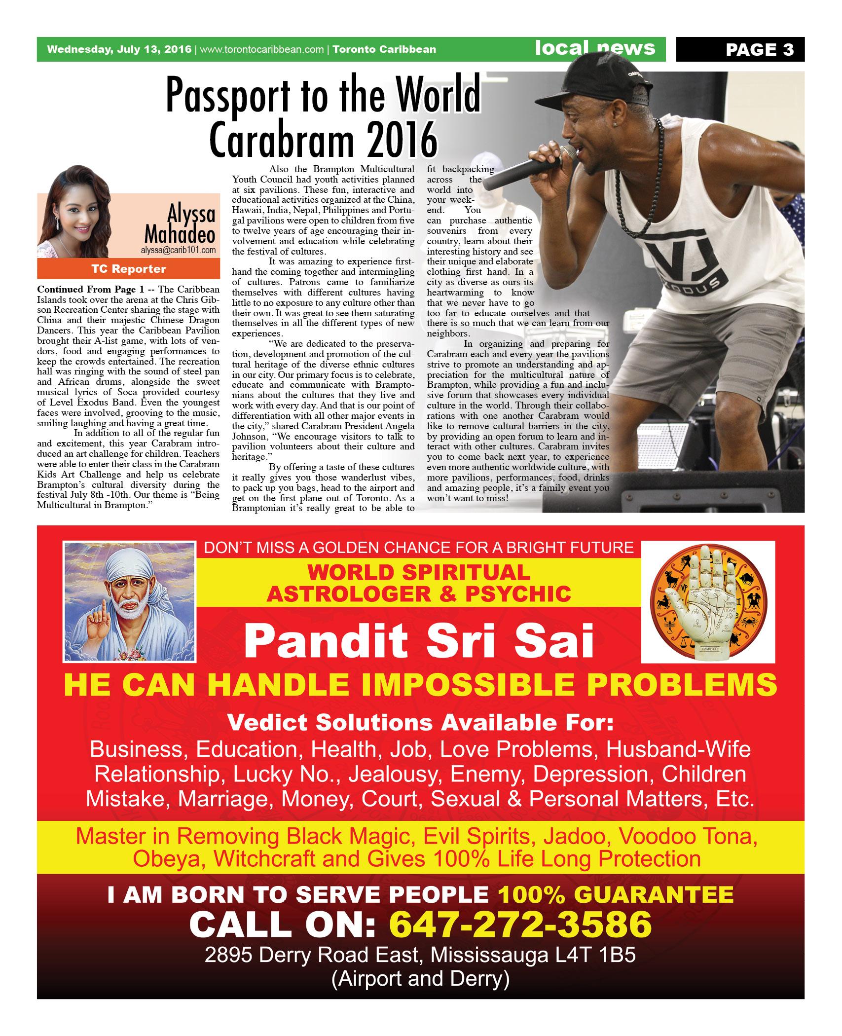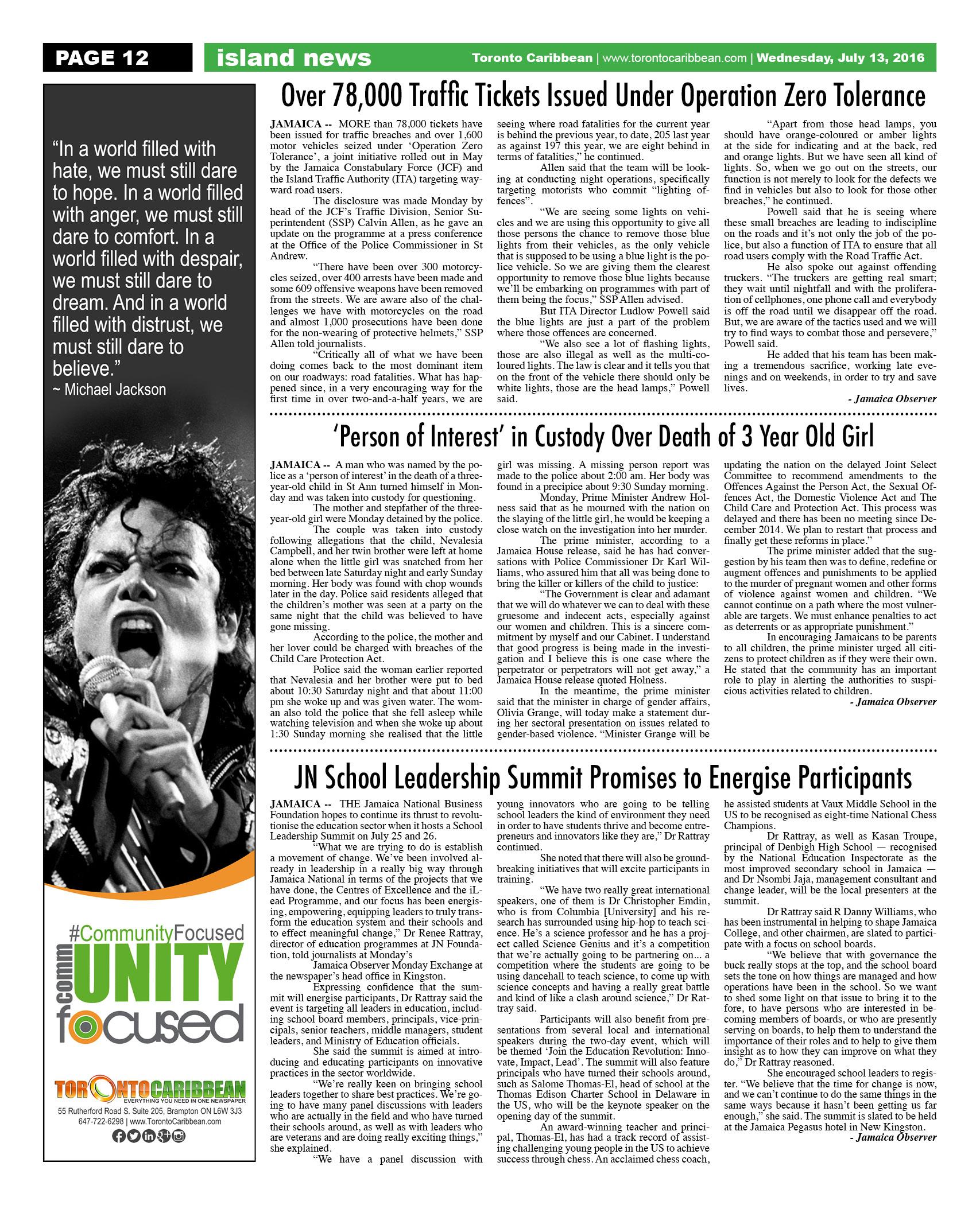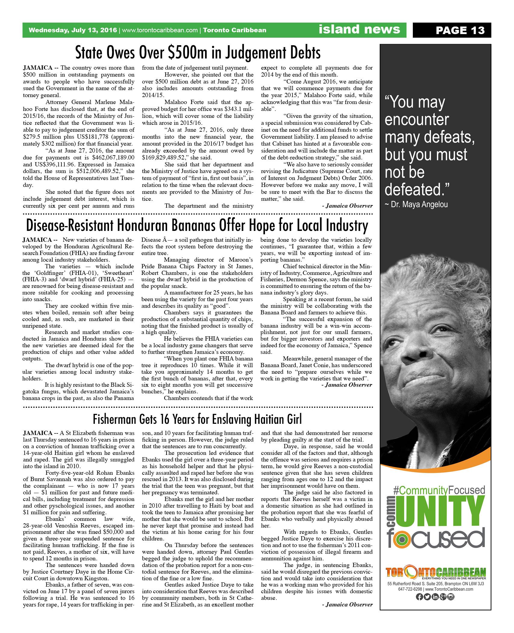 July 13 2016 Edition - Toronto Caribbean Newspaper