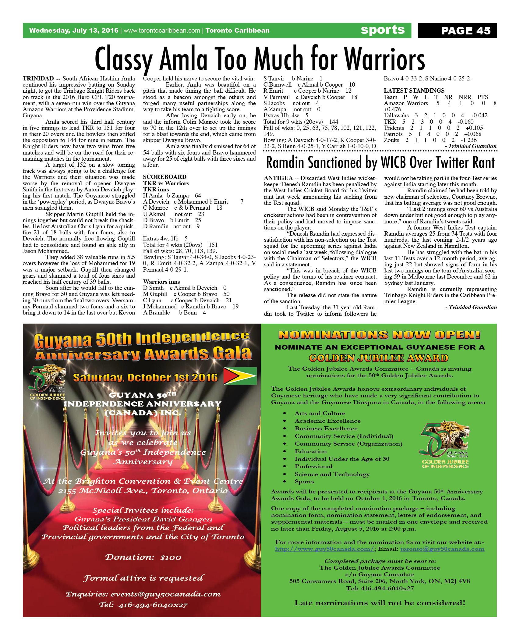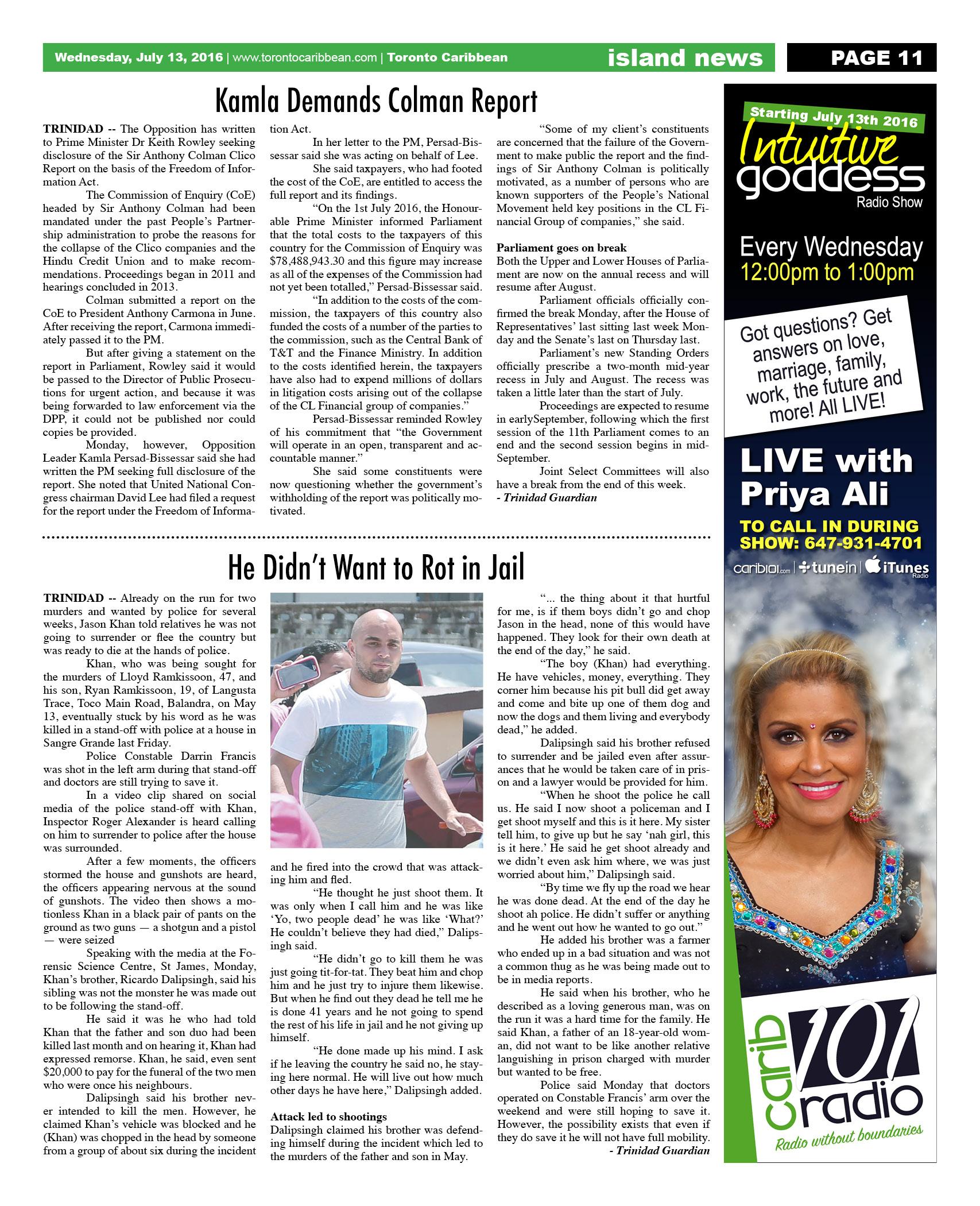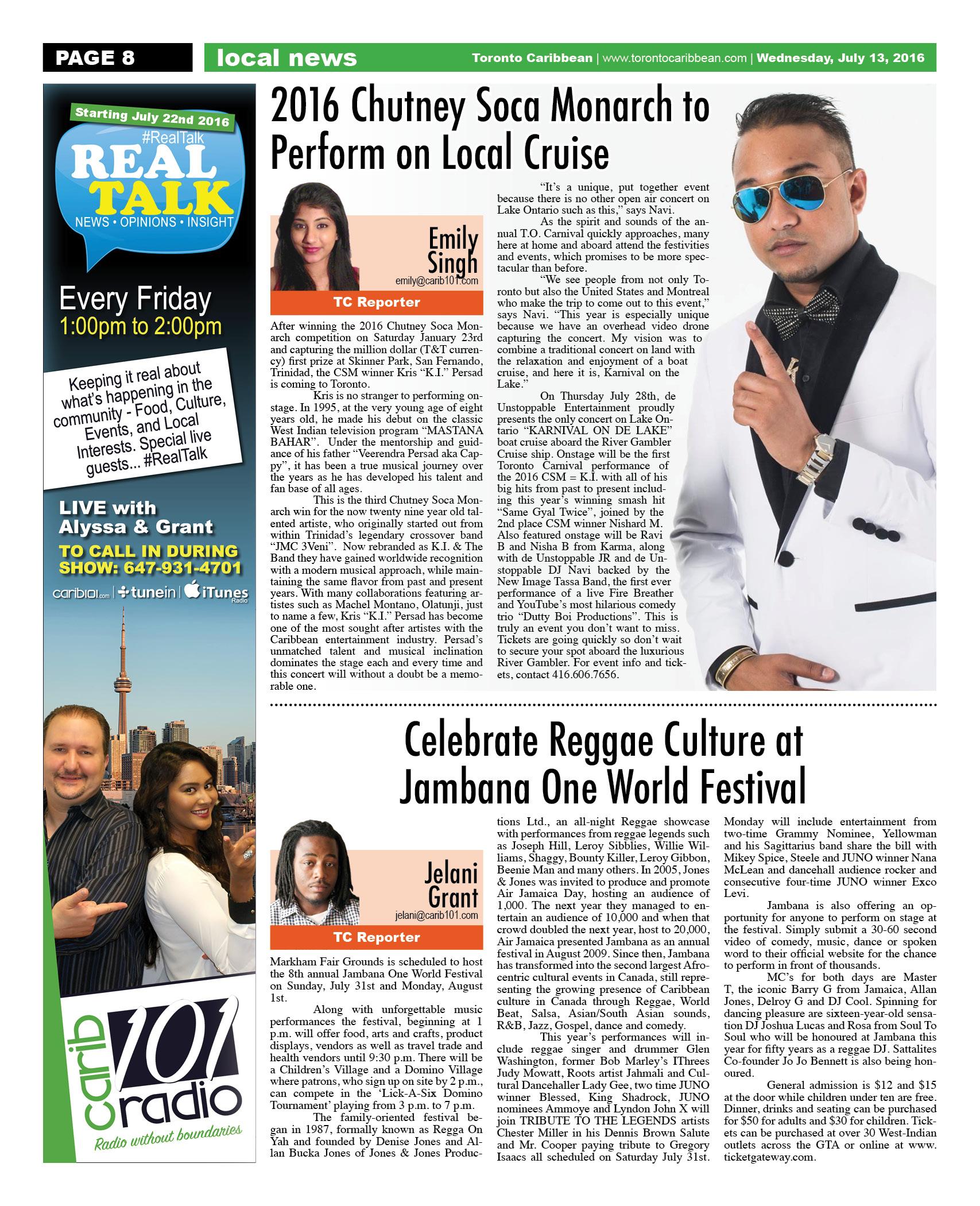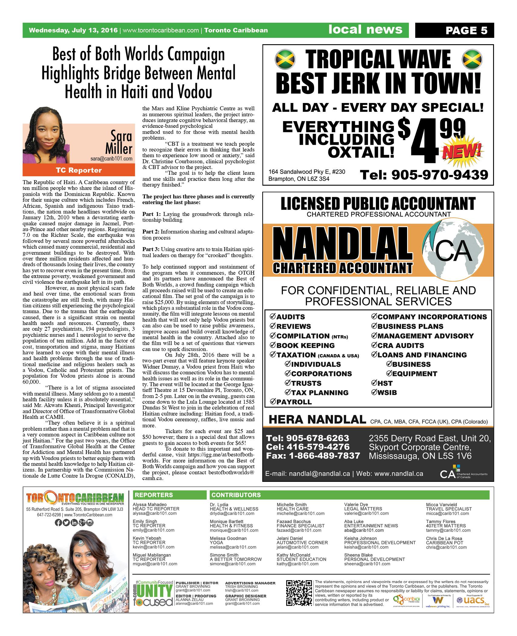 July 13 2016 Edition - Toronto Caribbean Newspaper