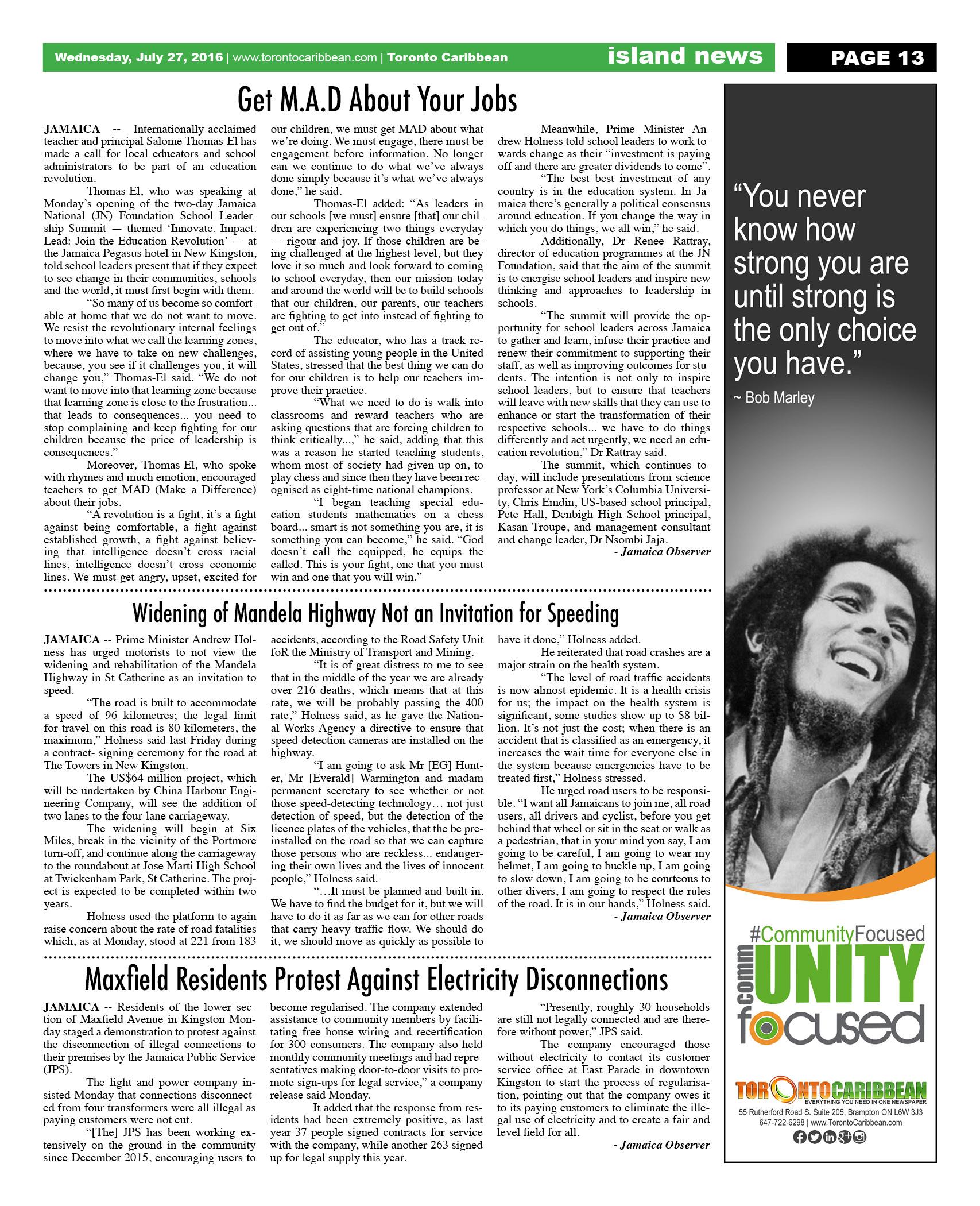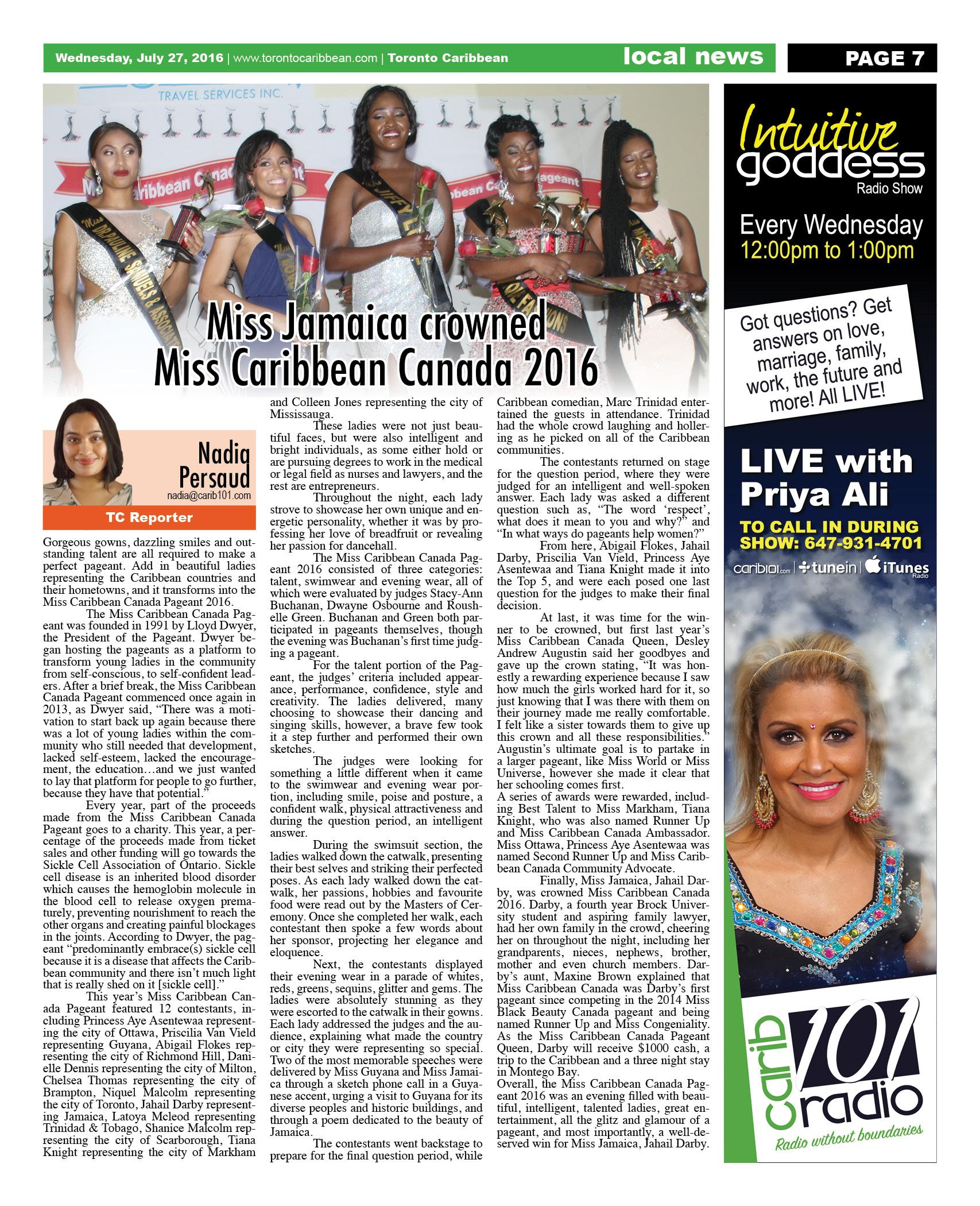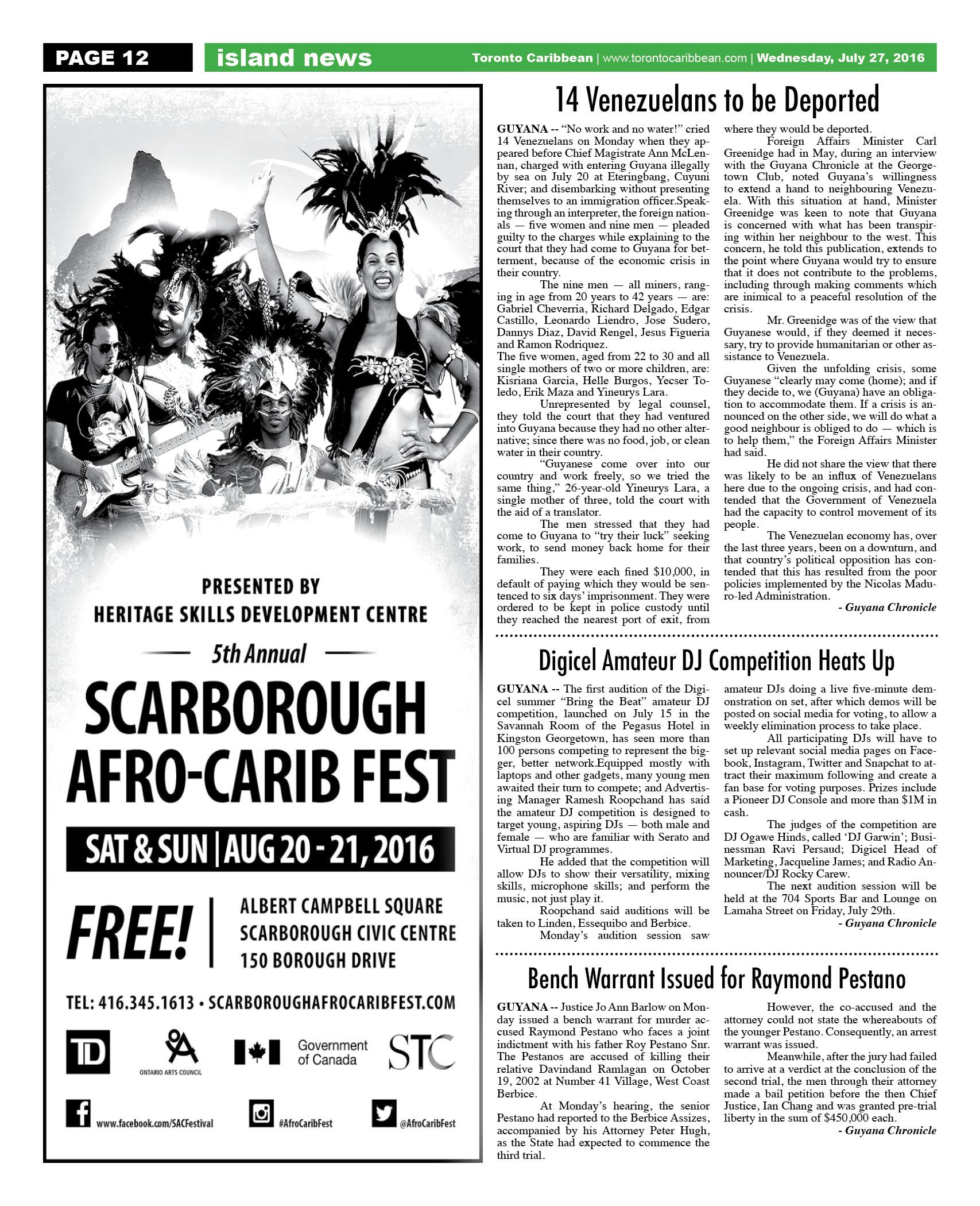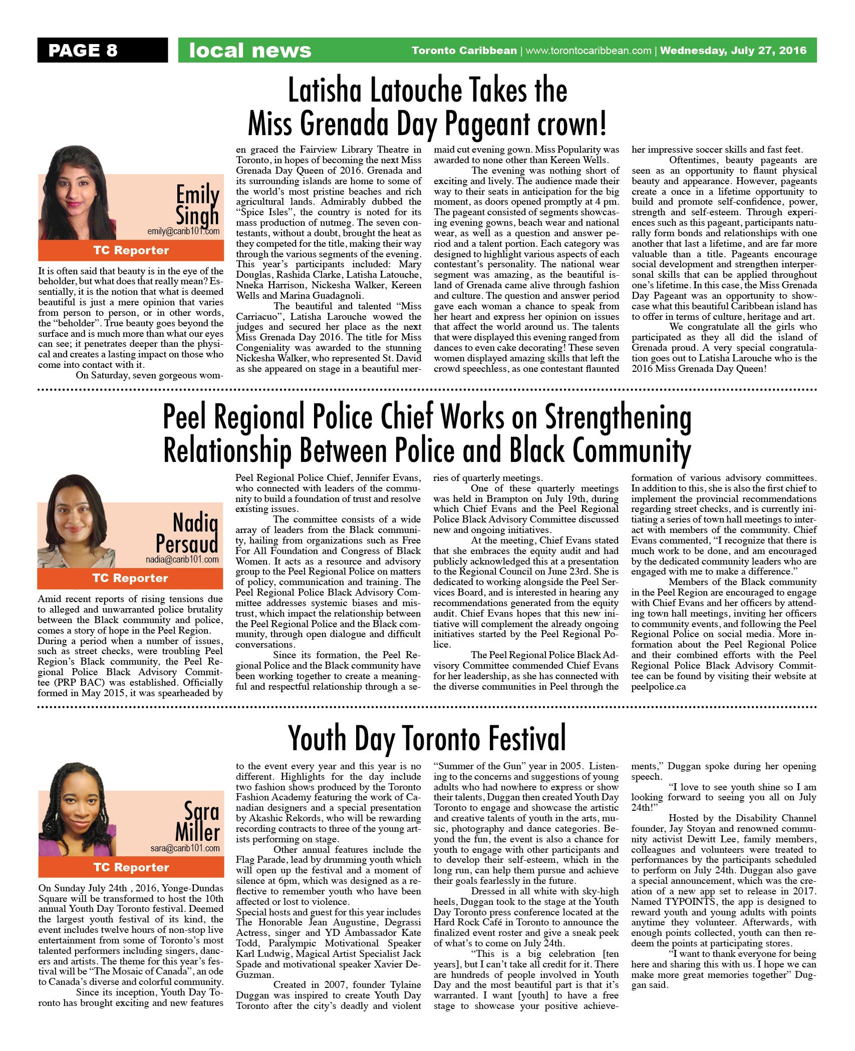 July 27 2016 Edition - Toronto Caribbean Newspaper