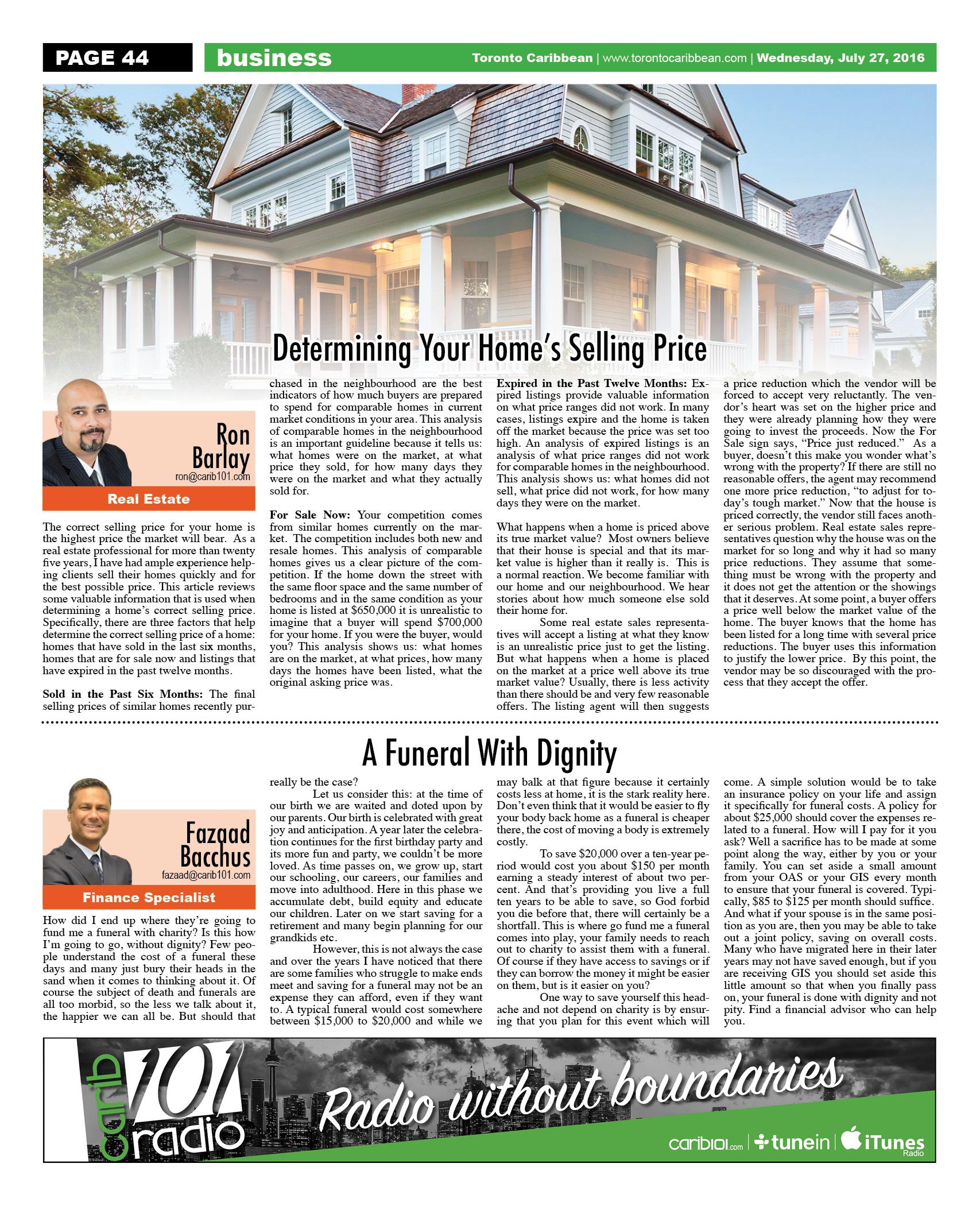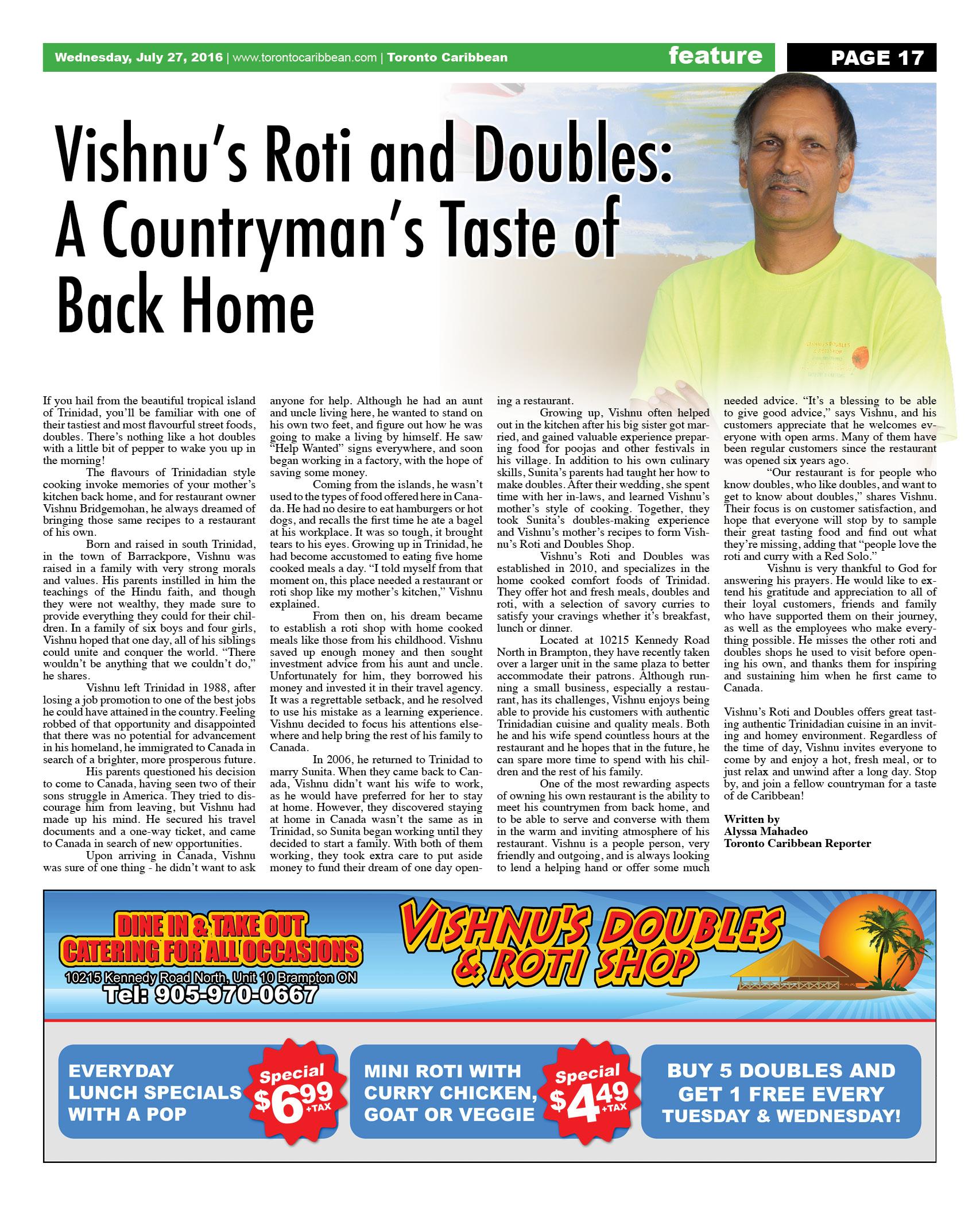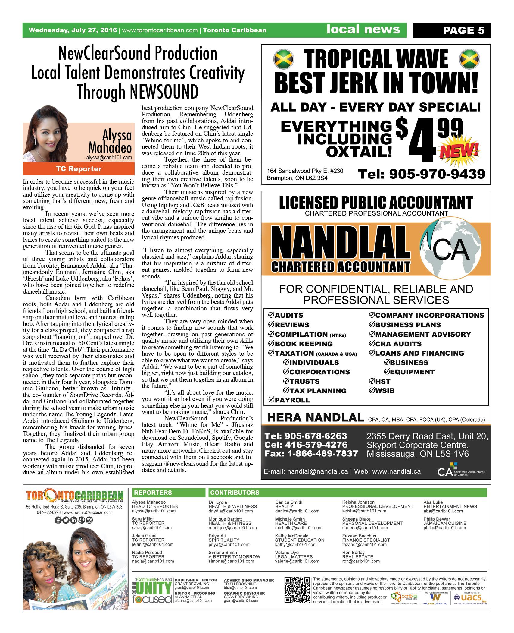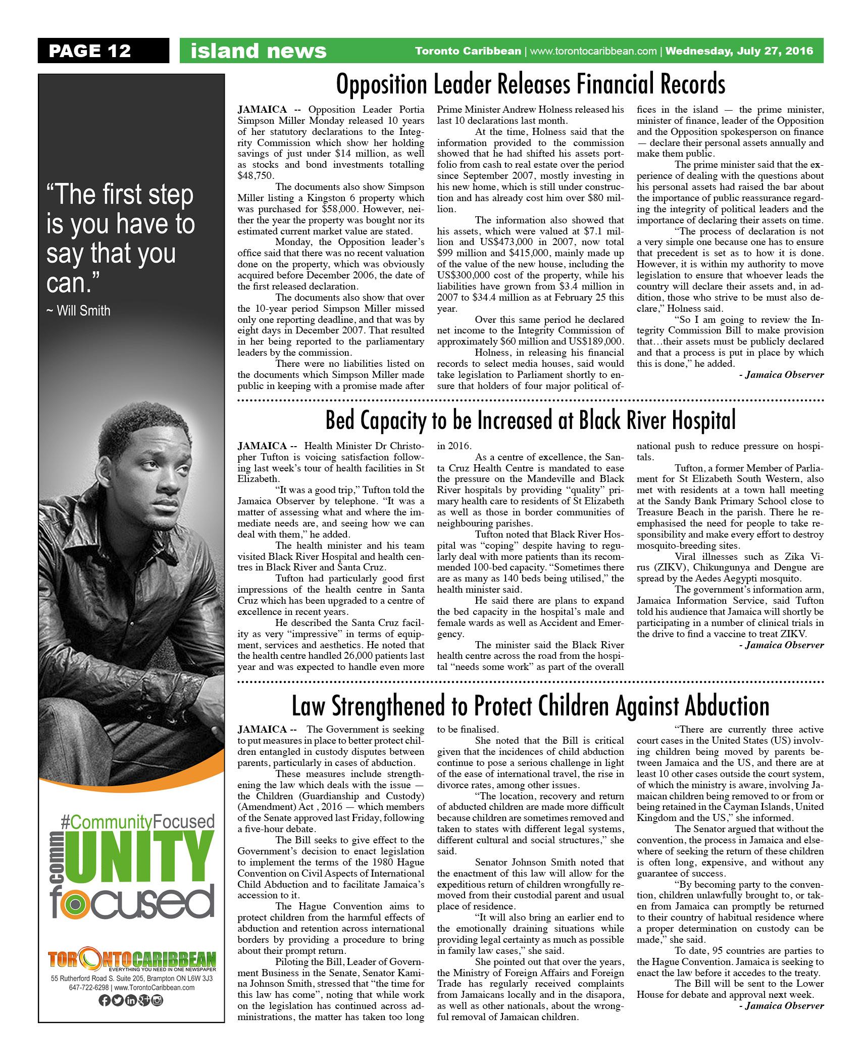 July 27 2016 Edition - Toronto Caribbean Newspaper