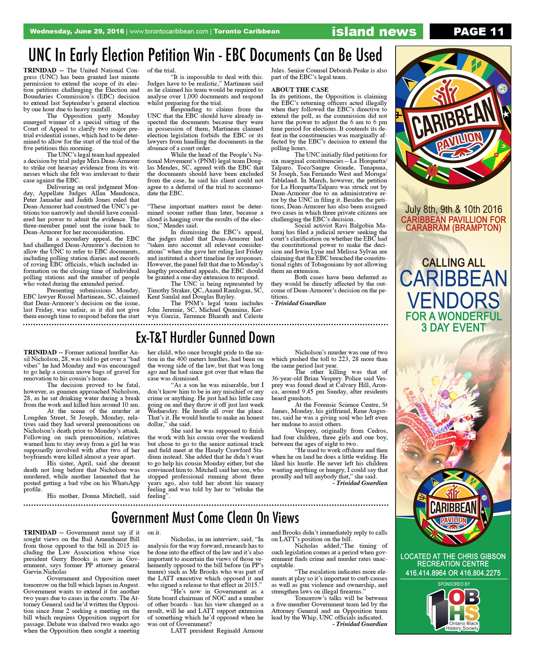 June 29 2016 Edition by Toronto Caribbean Newspaper - Issuu