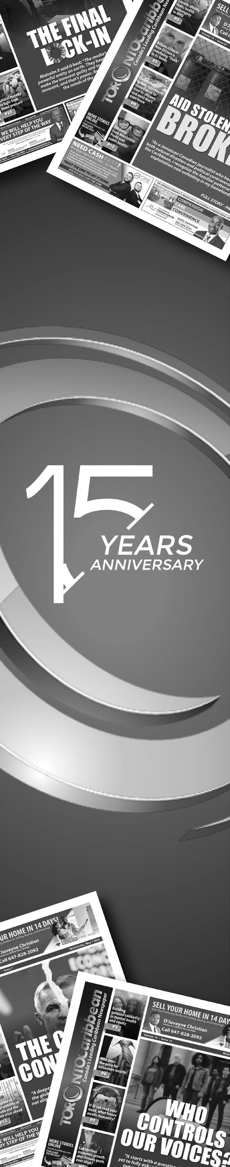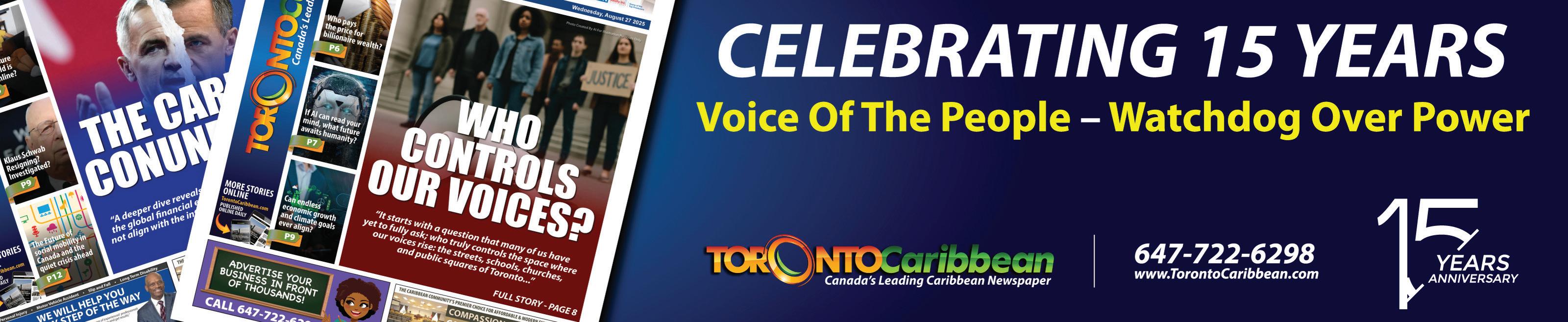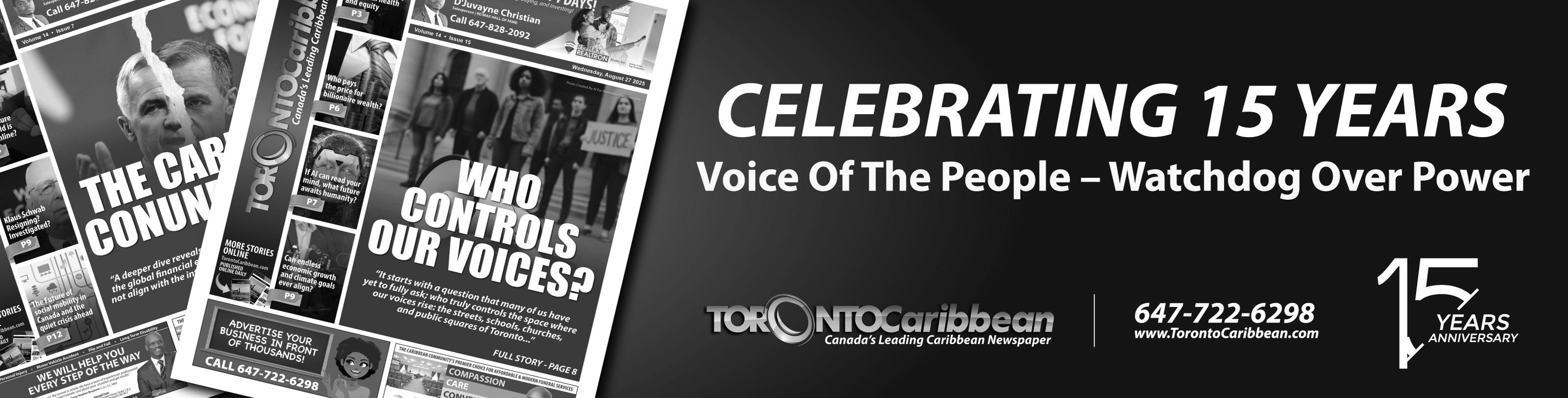 As we wrap up this edition and begin preparing the next one in two weeks, something quietly but powerfully hit me — we are entering our 15th year of publishing the Toronto Caribbean Newspaper.