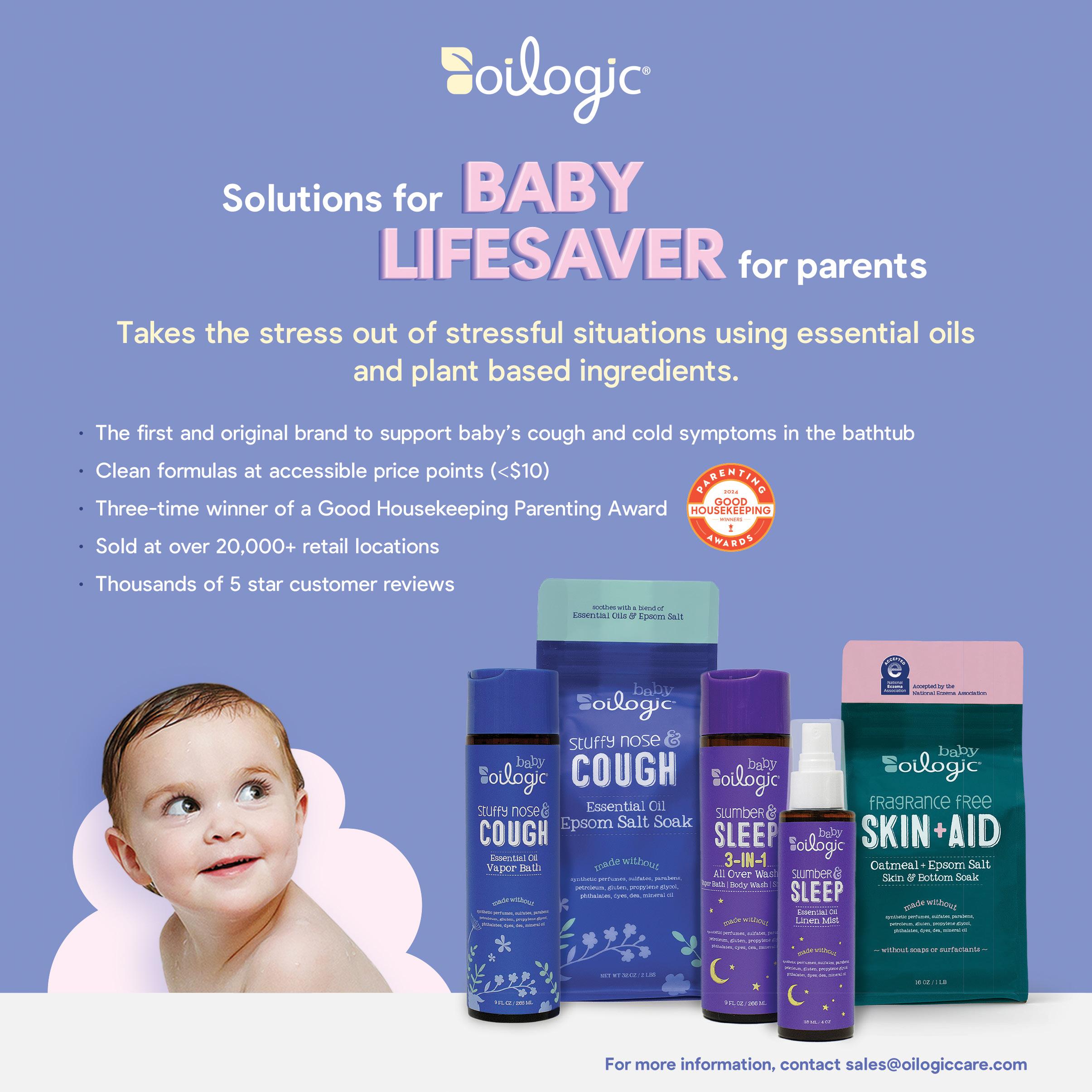 Oilogic® takes the stress out of stressful situations with baby using Essential Oils and other plant-based ingredients. The first brand to help baby’s cough and cold symptoms in the bathtub with best-selling Stuffy Nose & Cough Essential Oil Vapor Bath, a winner of a Good Housekeeping Parenting Award. Today, Oilogic® is tackling baby’s sensitive skin with Skin+Aid Oatmeal & Epsom Salt Soak, which has been awarded the Seal of Acceptance by the National Eczema Association.