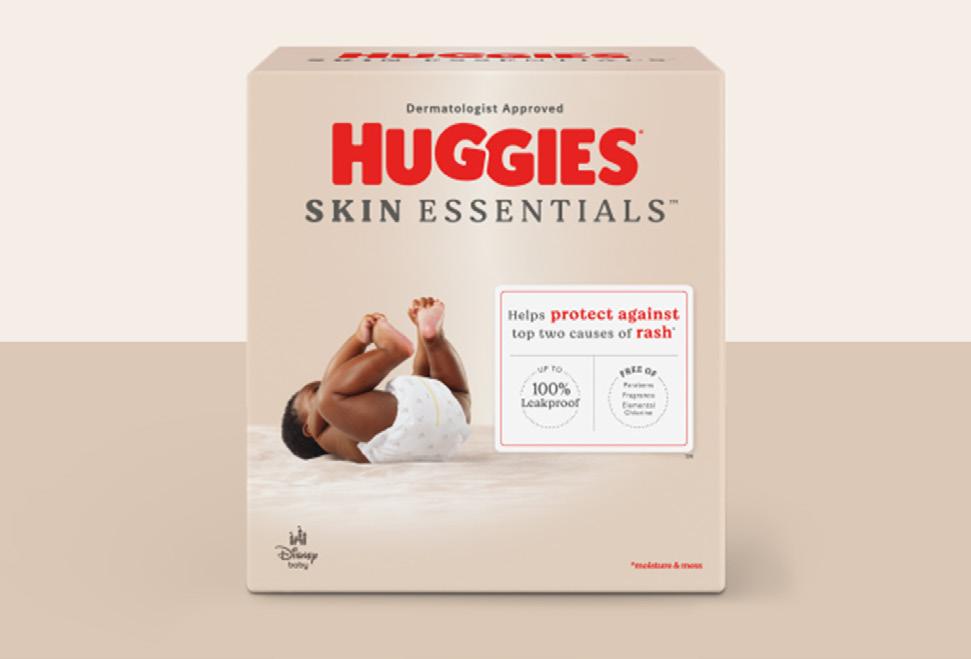 Huggies® Skin Essentials™ diapers help protect against the top two causes of rash* and provide up to 100% leakproof protection