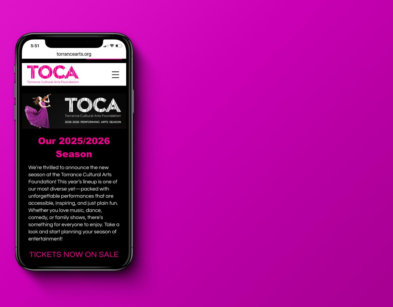 At TOCA, we’re not just curating a season—we’re creating space for discovery, connection, and joy. Whether it’s world-class music, laughout-loud comedy, soul-stirring theater, or family programming that ignites young imaginations, our goal remains the same: to offer something memorable for everyone who walks through our doors.