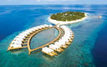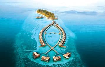 Description: Kudadoo combines soul-soothing Japanese design, eco-friendly architecture and all-inclusive ultra luxury on a dreamy private island in the Maldives. An arc of 15 expansive villas extends over the coral-rich ocean, each with its own infinity pool and muted, airy interiors. There’s a seafood-specialist restaurant, a champagnestocked bar and a salt-cave-toting spa – but remember the ethos here: ‘Anything, Anytime, Anywhere.’ Whether it’s a tailor-made tasting menu or a scuba excursion at sunrise, your round-the-clock butler is there to make it happen.