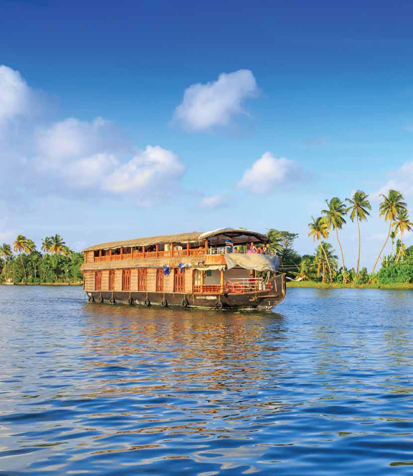 Transfer for embarkation on your private houseboat at Alleppey and cruise through the beautiful backwaters of Kerala. Witness the lifestyle of the locals and travel the