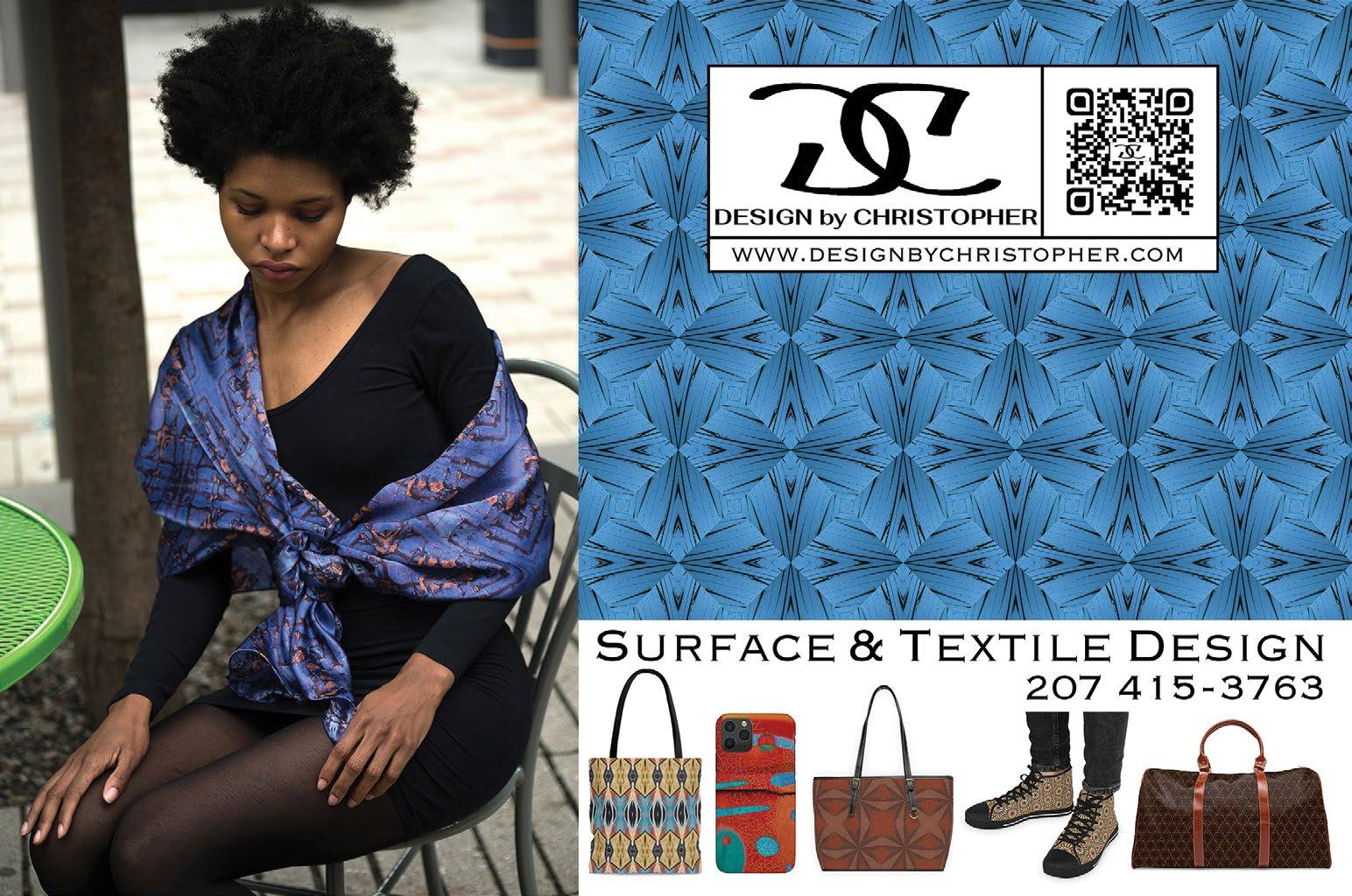 All his surface designs are derived from elements in his photographs. In the beginning, Christopher’s colorful and complex designs were created purely for his line of silk scarves. Following their success, the designs are now available for licensing.