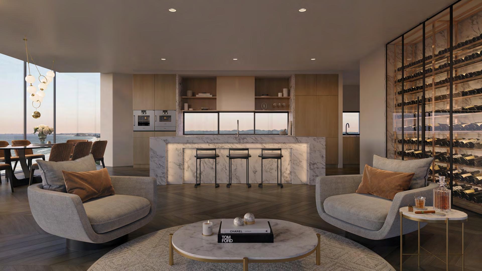 Club Royale Private residents dining room and kitchen, executive lounge and bar, meeting rooms and work spaces, oceanfront terrace, private wine storage