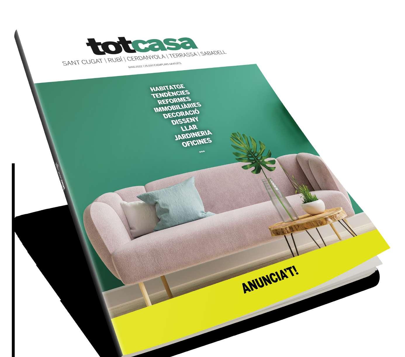 Tendències per la teva llar. Des d’aquesta nova edició de la revista, “totcasa”, volem seguir apropant-te el sector de la llar, amb consells, tendències, productes, habitatges i els millors serveis d’una de les zones i entorns d’atracció on moltes famílies decideixen establirse per tenir una qualitat de vida i desenvolupar-se com a persones. Les tendències de la llar estan evolucionant cap a un model més sostenible i ecològic, que prioritza la qualitat de vida dels seus habitants. Hi ha un interès creixent per la sostenibilitat, amb la recerca de solucions que permetin reduir l’impacte ambiental dels habitatges, amb espais que promoguin el benestar emocional i físic dels residents, amb l’ús de llum natural i espais verds. Les tendències de la llar actuals busquen crear entorns habitables, saludables i respectuosos amb el medi ambient. Esperem que des de “totcasa” t’inspirem per aconseguir-ho.