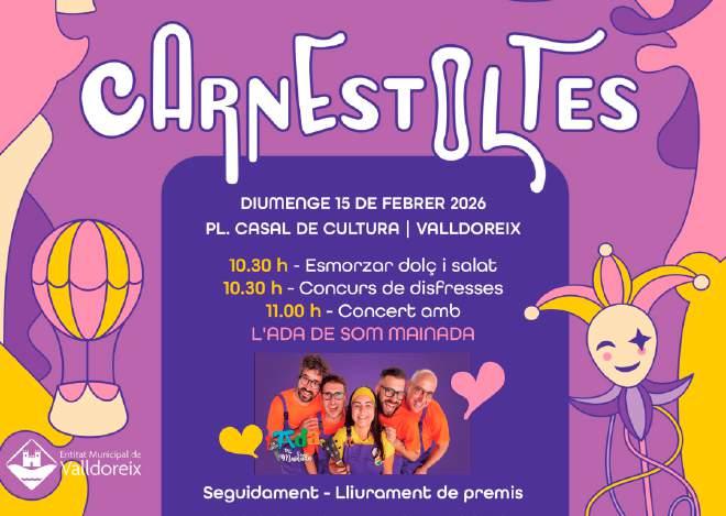 Celebració de Carnaval amb rua de Carnestoltes amb animació musical a càrrec de La Batuescola, concurs de disfresses i actuació d’un Dj.