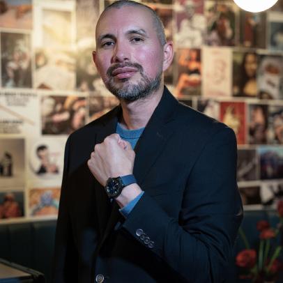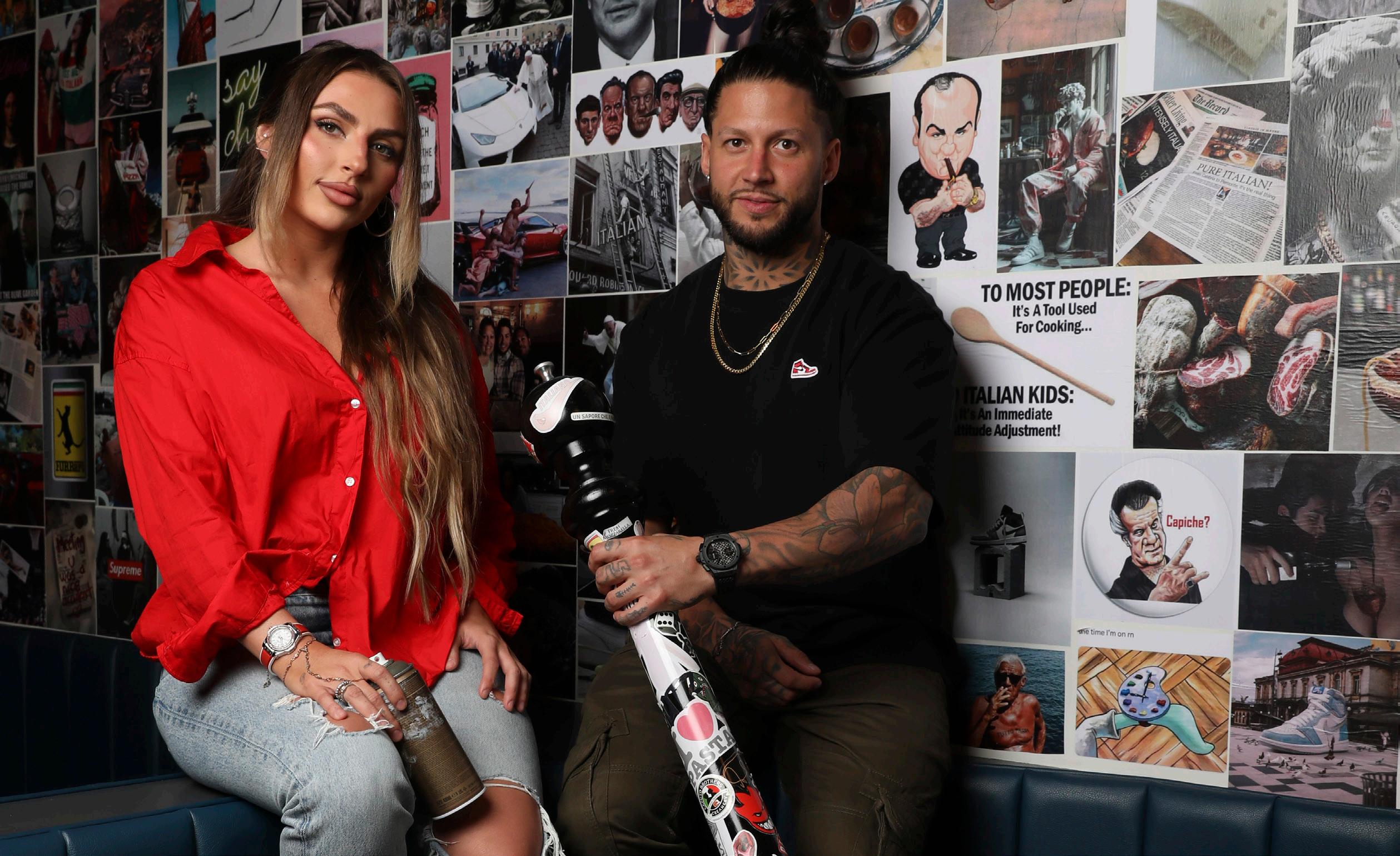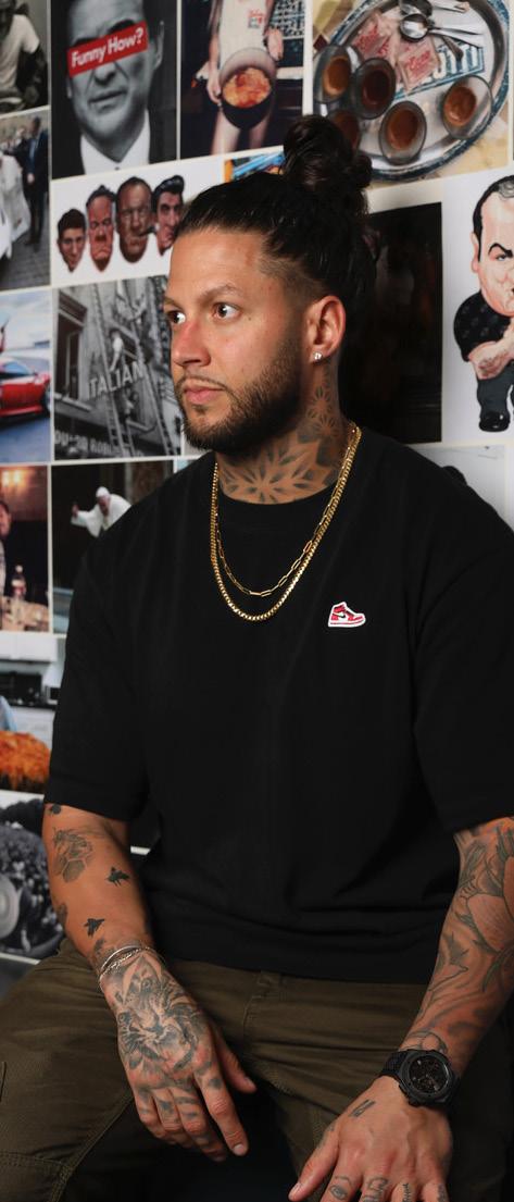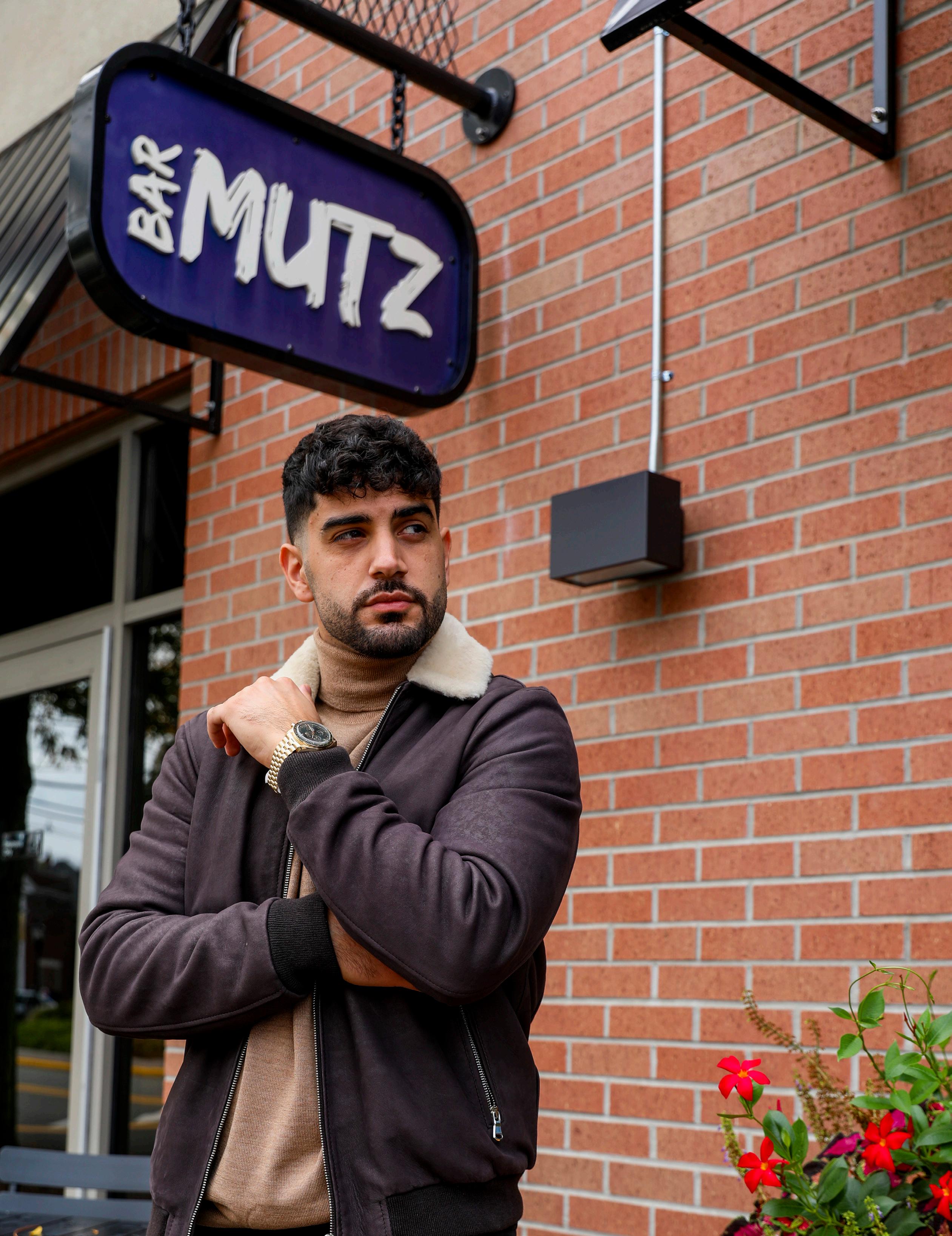 He’s sitting at Bar Mutz, his latest spot, where hip-hop pumps through the sound system and the graffiti wall behind him is as hot as the mozzarella in front of him. “I told the artist, make it wild,” he says, glancing up at the neon glow. “Make it unhinged and just slightly illegal.”