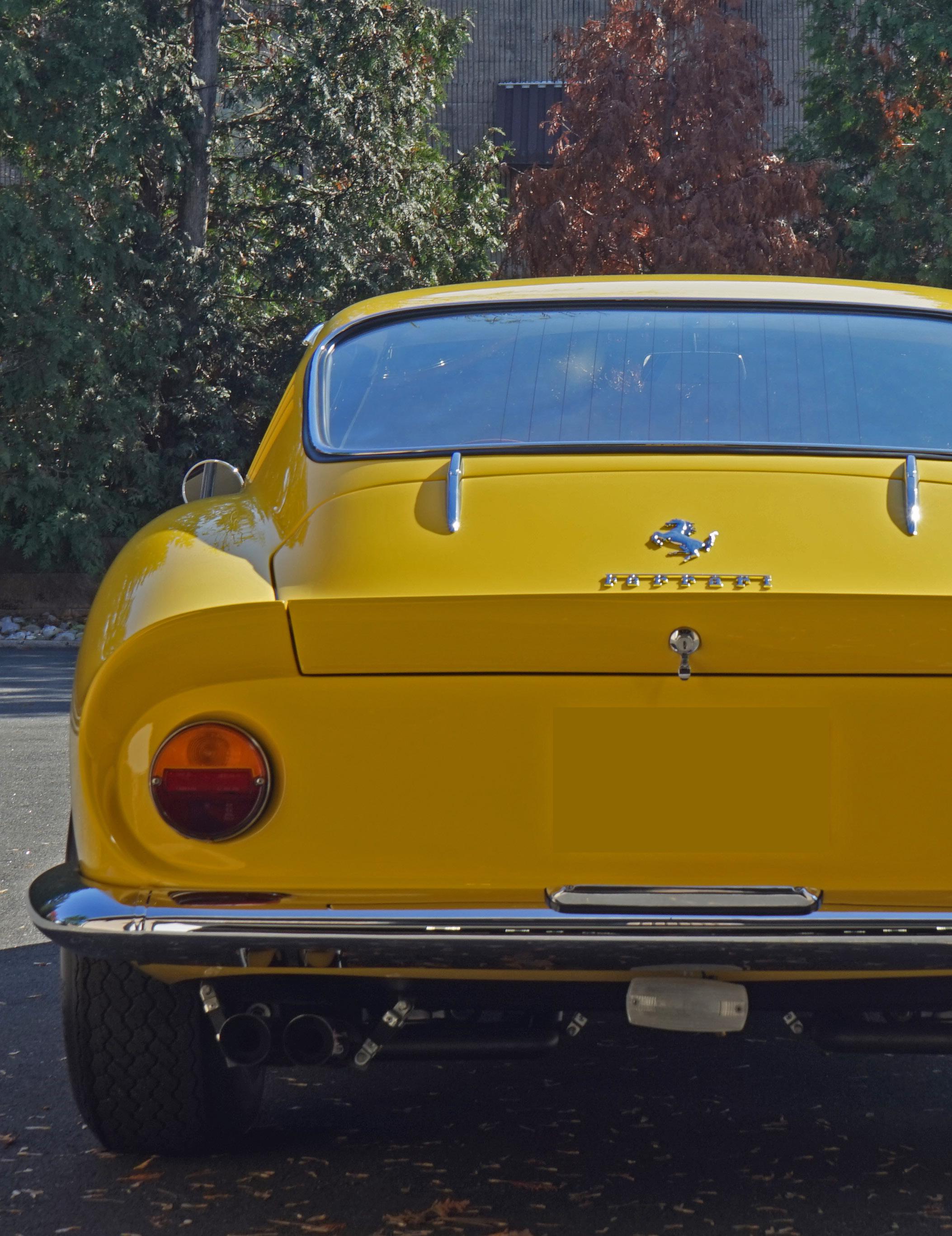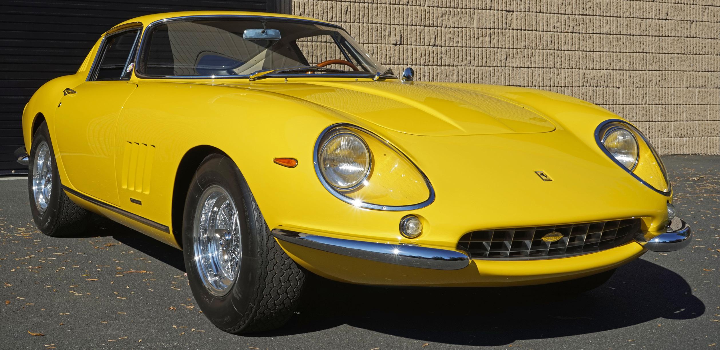 Resprayed Giallo Modena and its brightwork affixed, after a few years, this 275 GTB/4’s journey was complete.