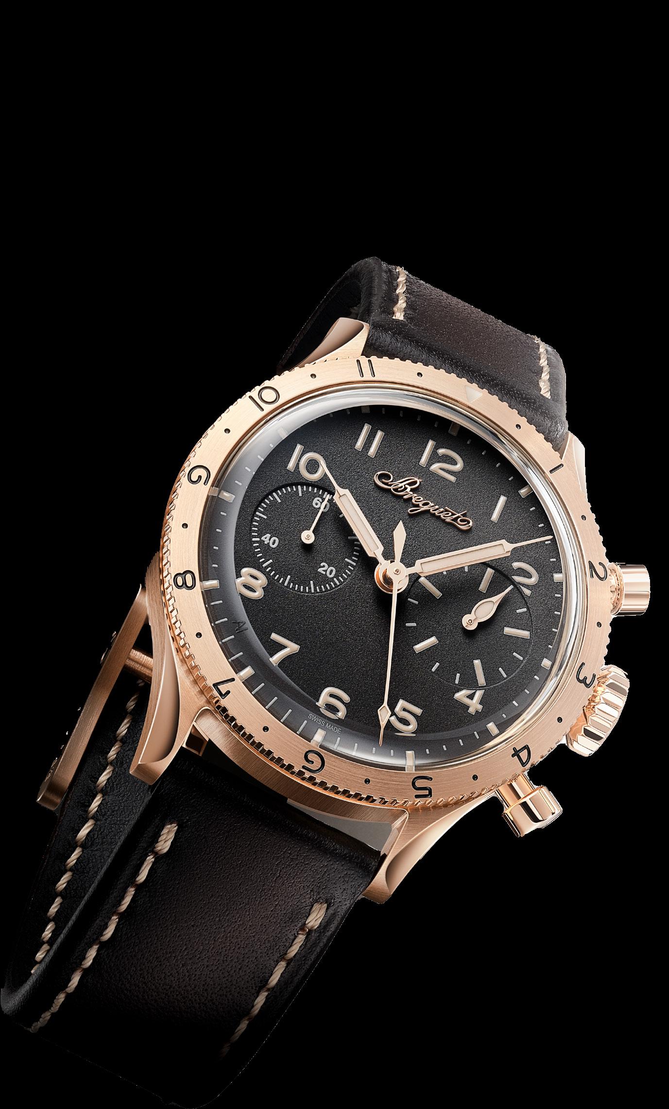 These new chronographs with flyback function pay tribute to the human genius and cour age of the explorers of time: Abraham-Louis Breguet, the watchmaker who founded the eponymous company; Louis Breguet, his great-great-grand son, an aircraft manufacturer; and the aviator duo Dieudonné Costes and Maurice Belmont, the first people to fly from Paris to New York.