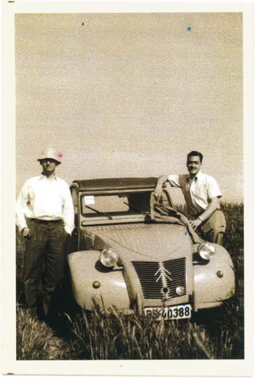 Nous avons embarqué nos valises et repris la route. Arrivés sur une grande place devant l’église, quelques vieux hommes barbus, avec leur canne, étaient assis là, sur un banc, et nous re gardaient d’un air rieur. Nous ne savions pas trop pourquoi. Nous les avons salués avant de mieux comprendre. J’ai dû freiner brusquement car, arrivés au bout de la place, nous avons constaté que celle- ci se terminait par un large esca lier en pente! Que faire? Eh bien, s’y re mettre pardi! Nous avons vidé le véhi cule, l’avons soulevé, puis descendu les escaliers, marche après marche, jusqu’à la rue principale. Seule une Deuche en était capable! Nous avons chargé à nouveau nos bagages et sommes remon tés à bord, le tout sous les acclamations des villageois. Un périple héroïque! Dr. med. R. Develey