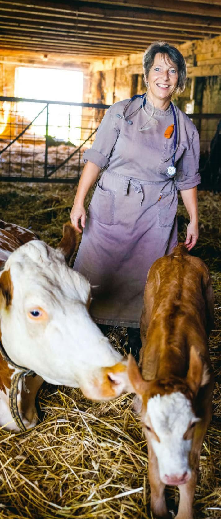 Troubles digestifs ou ovariens, mammites, chutes et boiteries: les cas qui requièrent ses mains ex pertes sont multiples. Mais ce sont les mises bas qui réservent les plus vives émotions. Priée d’ouvrir pour nous sur ce point le livre aux souvenirs, Nadia Cantoni évoque sa première césarienne sur une vache à terme. C’était un 24 décembre, dans une écurie très sombre. «Prié de nous éclairer, le propriétaire s ’est évanoui pendant l’opération.