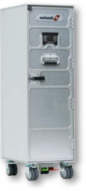 Trolley Swissair en aluminium 42,8 x 30,4 x 104 cm / 16,9 kg avec 3 tiroirs et 2 étagères.