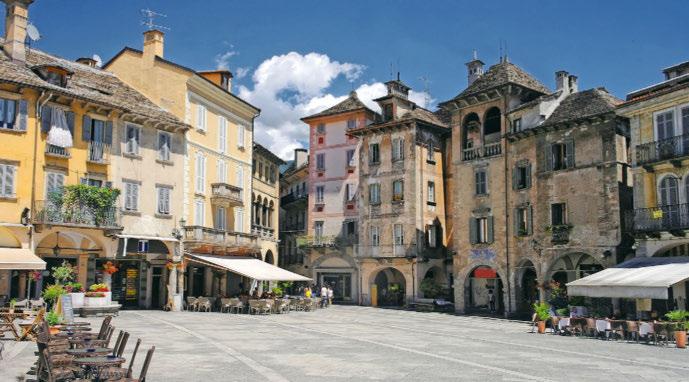 medievale, Domodossola è adagiata nel fondovalle del fiume Toce, all’imbocco di sette valli alpine. Il centro storico si sviluppa tra romantiche piazze e viuzze, su cui si a acciano magnifici edifici storici.