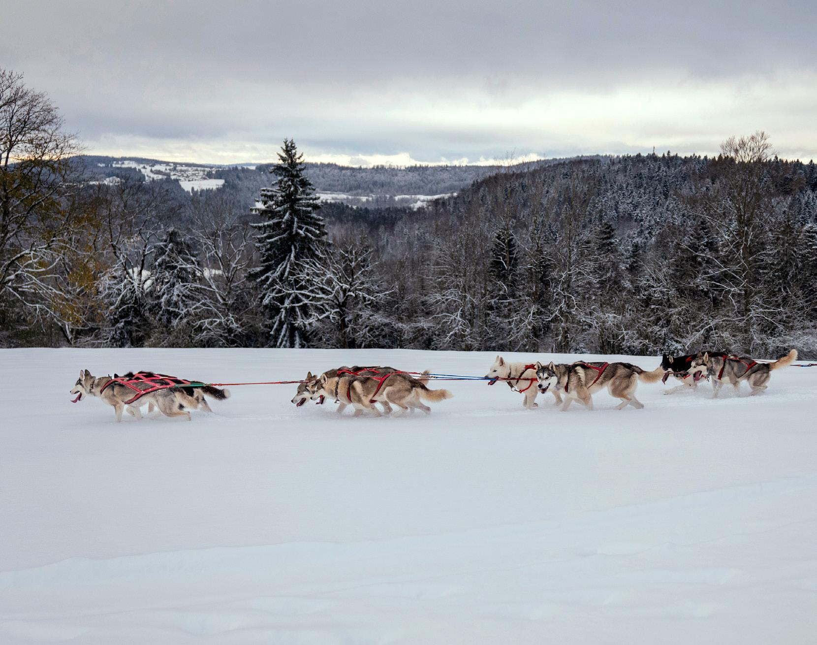 Non occorre andare fino in Alaska per vivere l’emozione di una corsa con i cani da slitta. Incontro con gli husky di Les Bois nel Giura.
