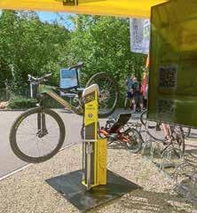 wurden von den Besucherinnen und Besuchern absolviert. Auch der TCS Sektion Biel/Bienne-Seeland war mit einem Stand im Aarepark bei der Kufa vertreten. Präsentiert wurde dem interessierten Publikum eine breite Palette von Produkten, Dienstleistungen und Aktivitäten rund um die Elektromobilität. Unter anderem eine Ladestation für Elektroautos, eine Veloreparatursäule «bike repAIR» sowie ein eCargobike «Carvelo» zum Testen.