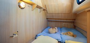 • Kabine vorne mit Doppelbett und Seitenkabine mit 2 Etagenbetten.
