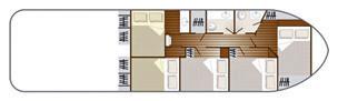 • Kabine vorne mit 2 Einzelbetten, umwandelbar in ein Doppelbett; 2 Seitenkabinen, je mit 2 Etagenbetten und 2 Kabinen hinten, je mit 2 Einzelbetten, umwandelbar in ein Doppelbett.