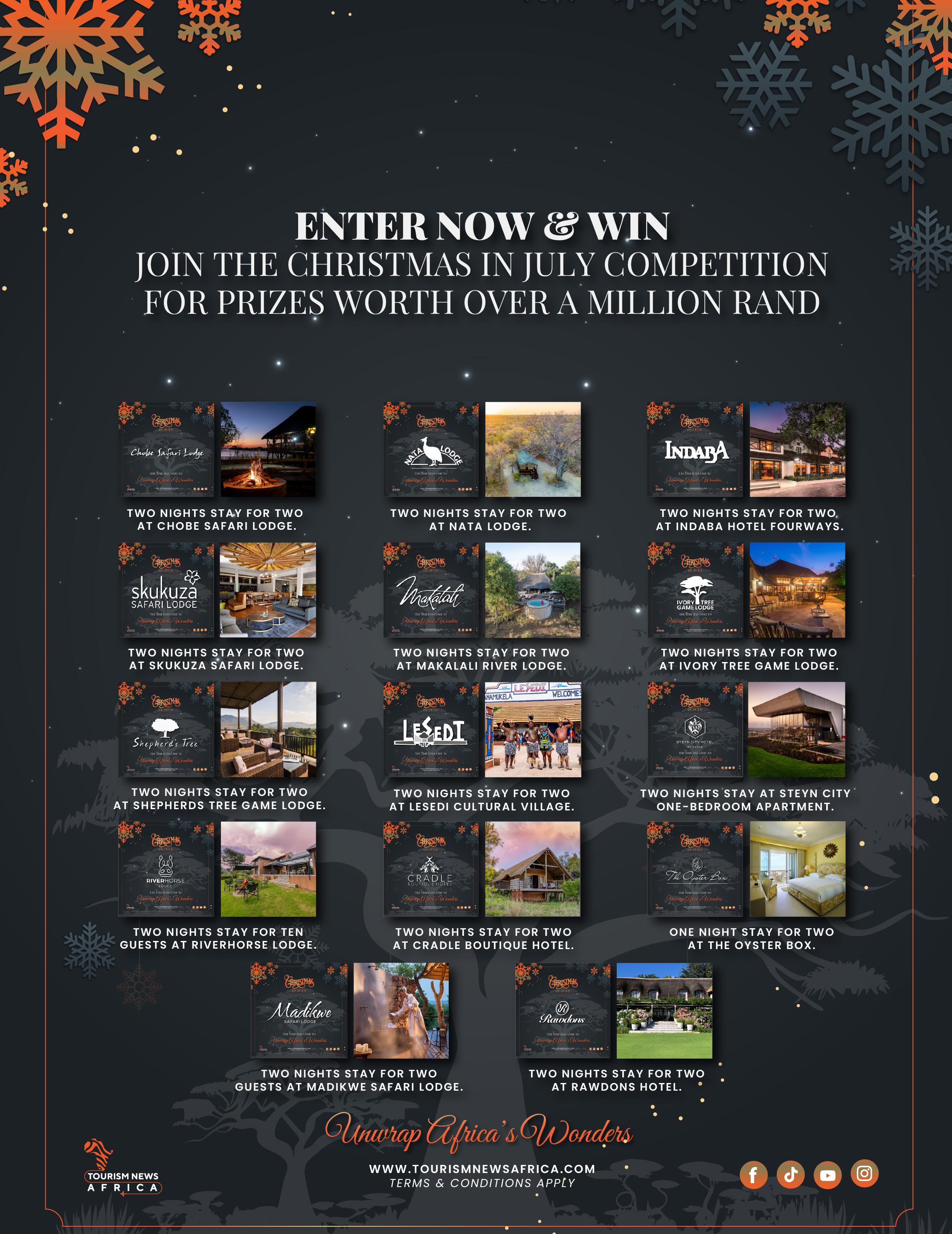 We’re also beyond excited to unveil our Christmas in July Advent Calendar, a festive celebration packed with prizes worth up to R1 million! Picture yourself winning a safari escape in Pilanesberg, or an exclusive dining experience inspired by Africa’s shores. This is your chance to unwrap the magic of travel and create memories that last a lifetime. Stay tuned to our website and follow us on social media for entry details and updates on this spectacular giveaway.