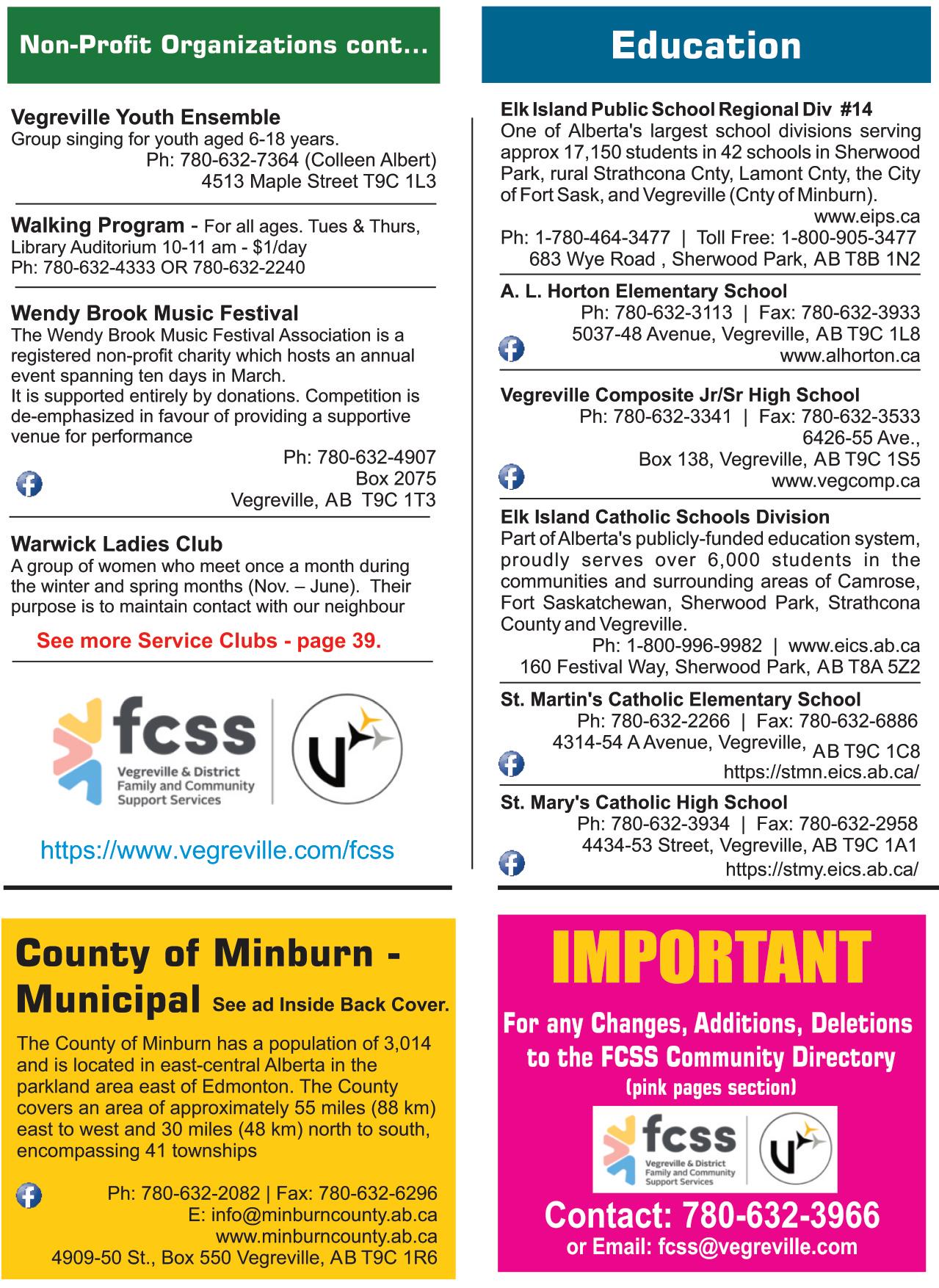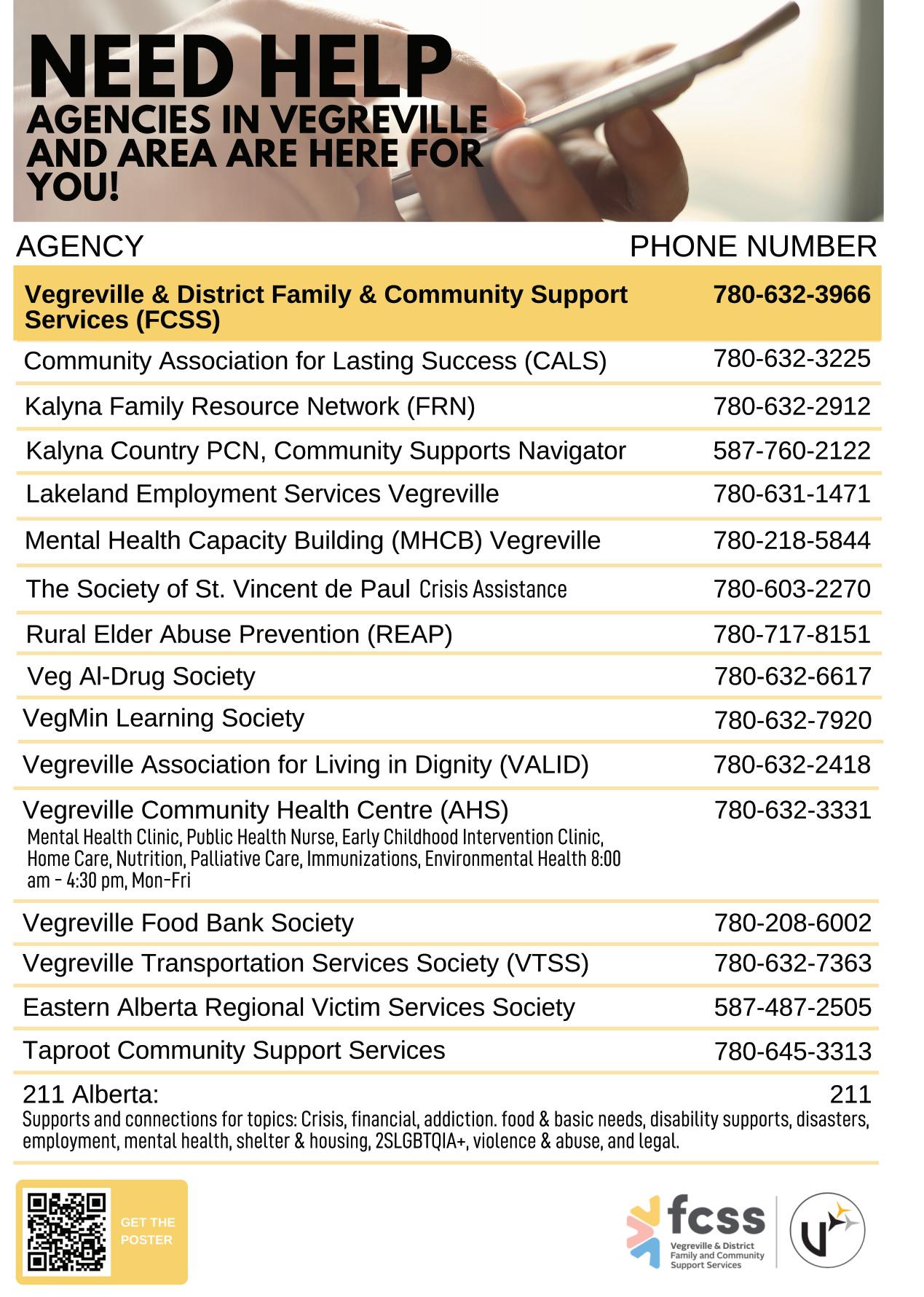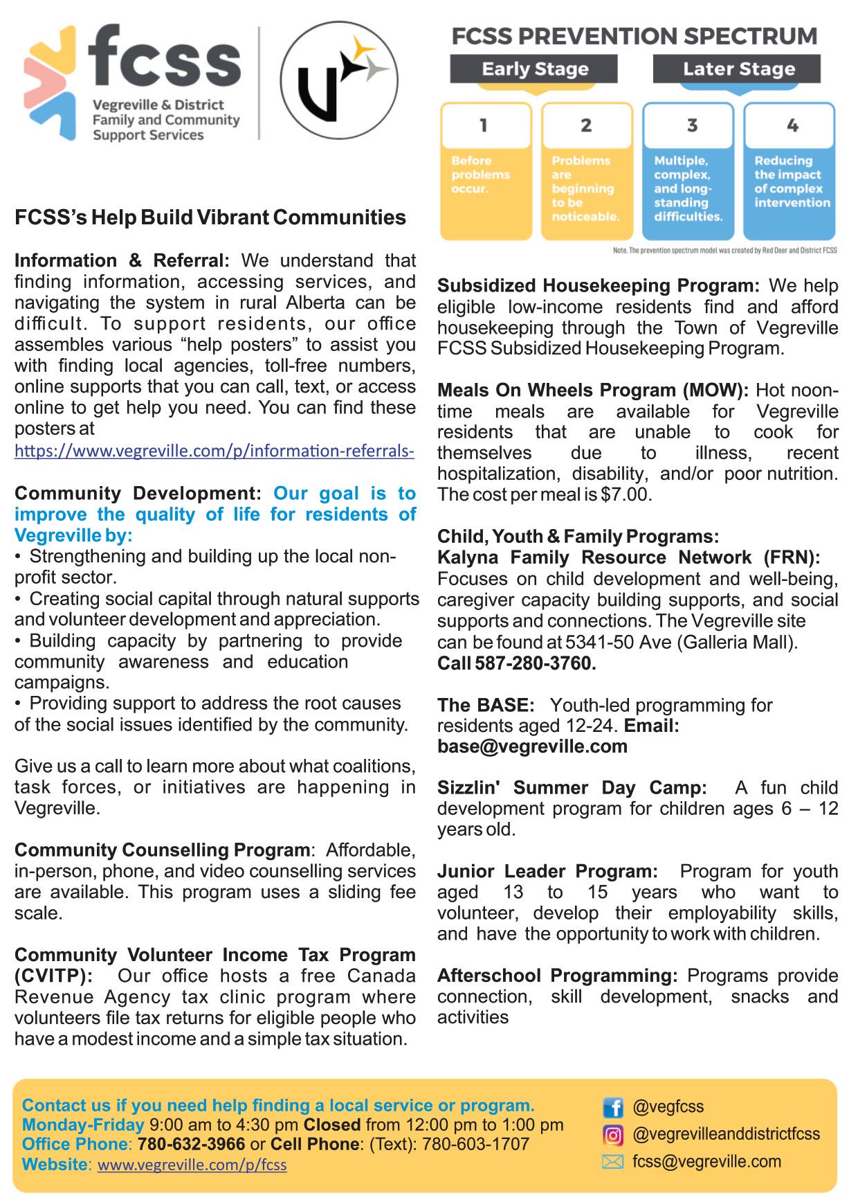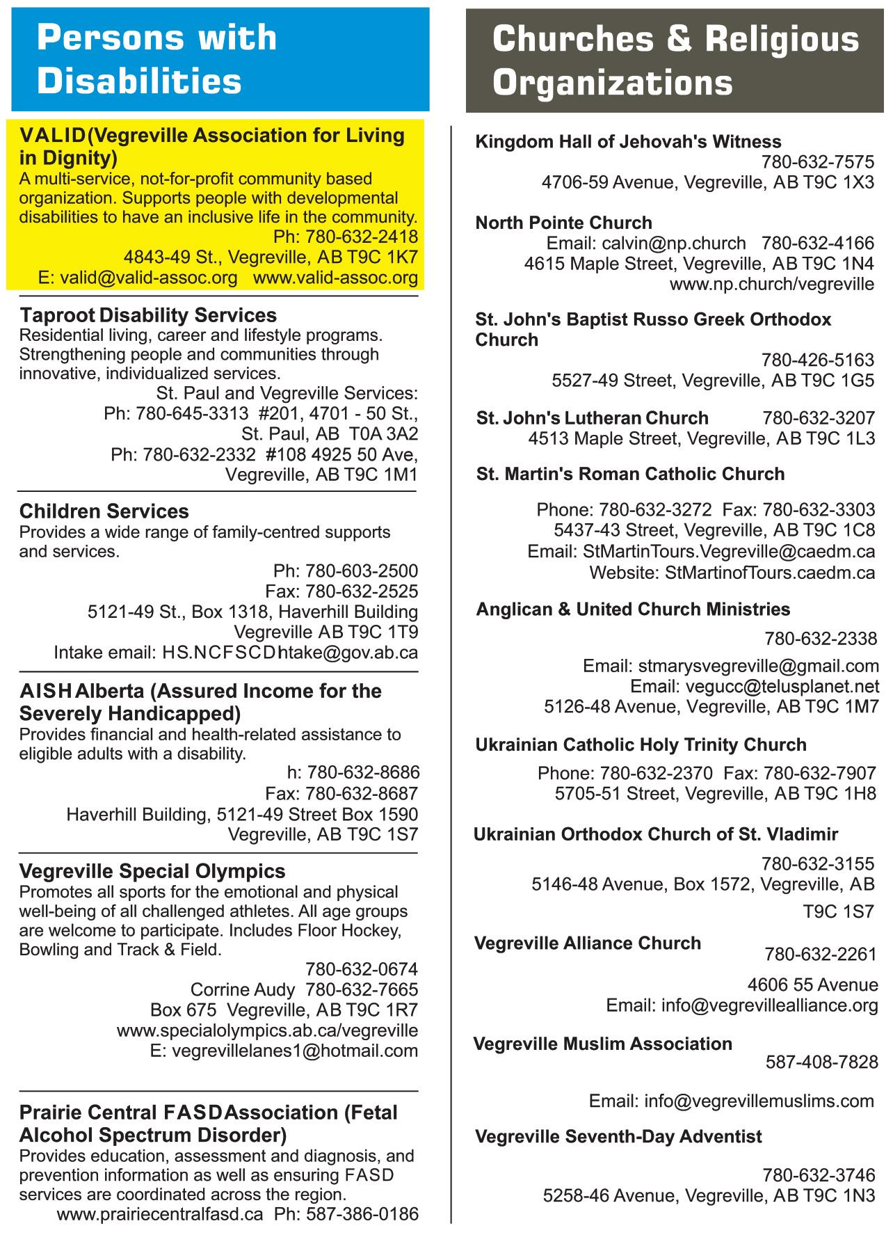 This resource is a successful collaboration between the Town of Vegreville, Vegreville & District Family & Community Support Services (FCSS) and Vegreville Kinsmen Directory