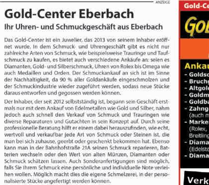 Anzeige mit Rahmen. Der Rahmen kostet 5,- € zusätzlich.