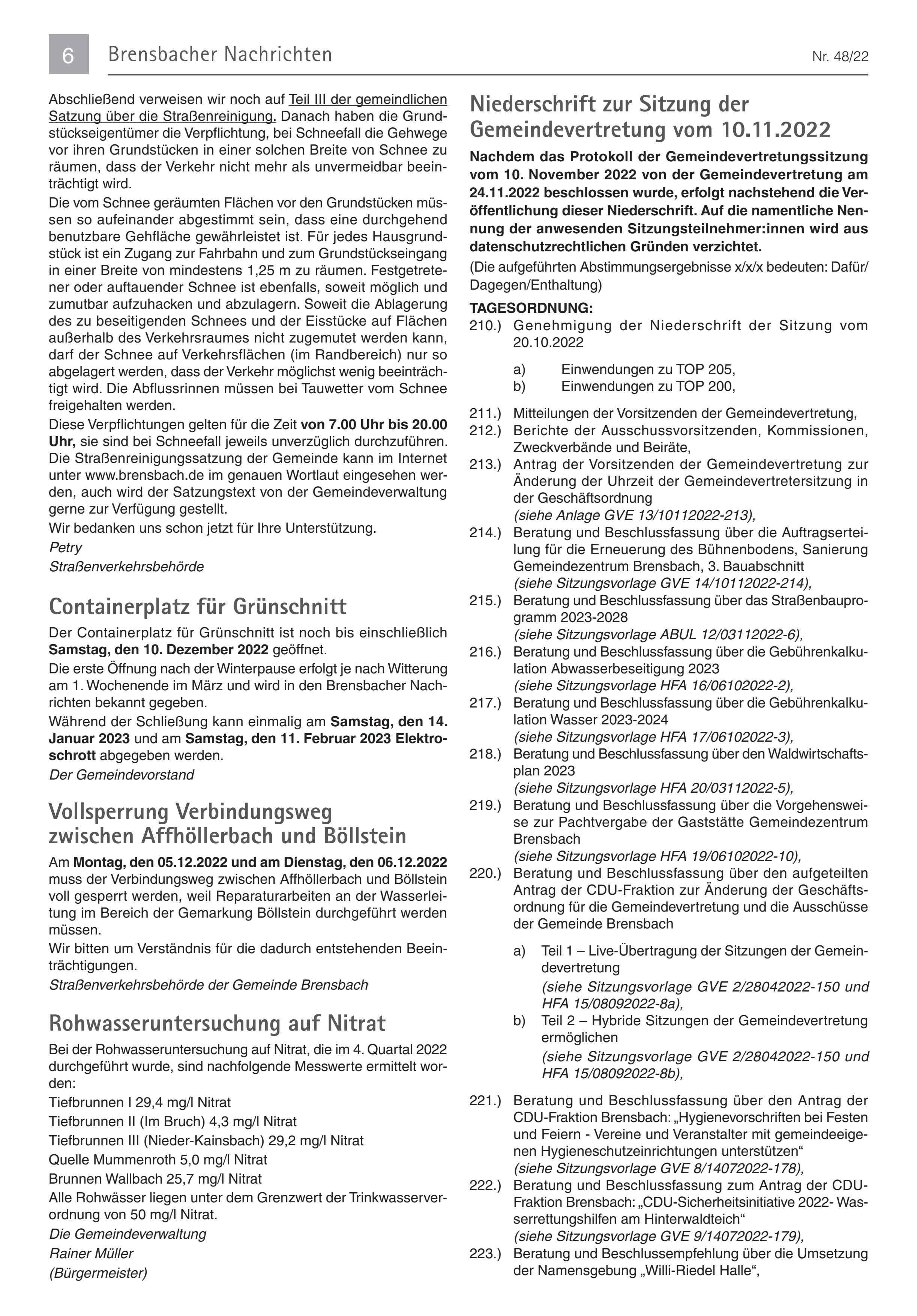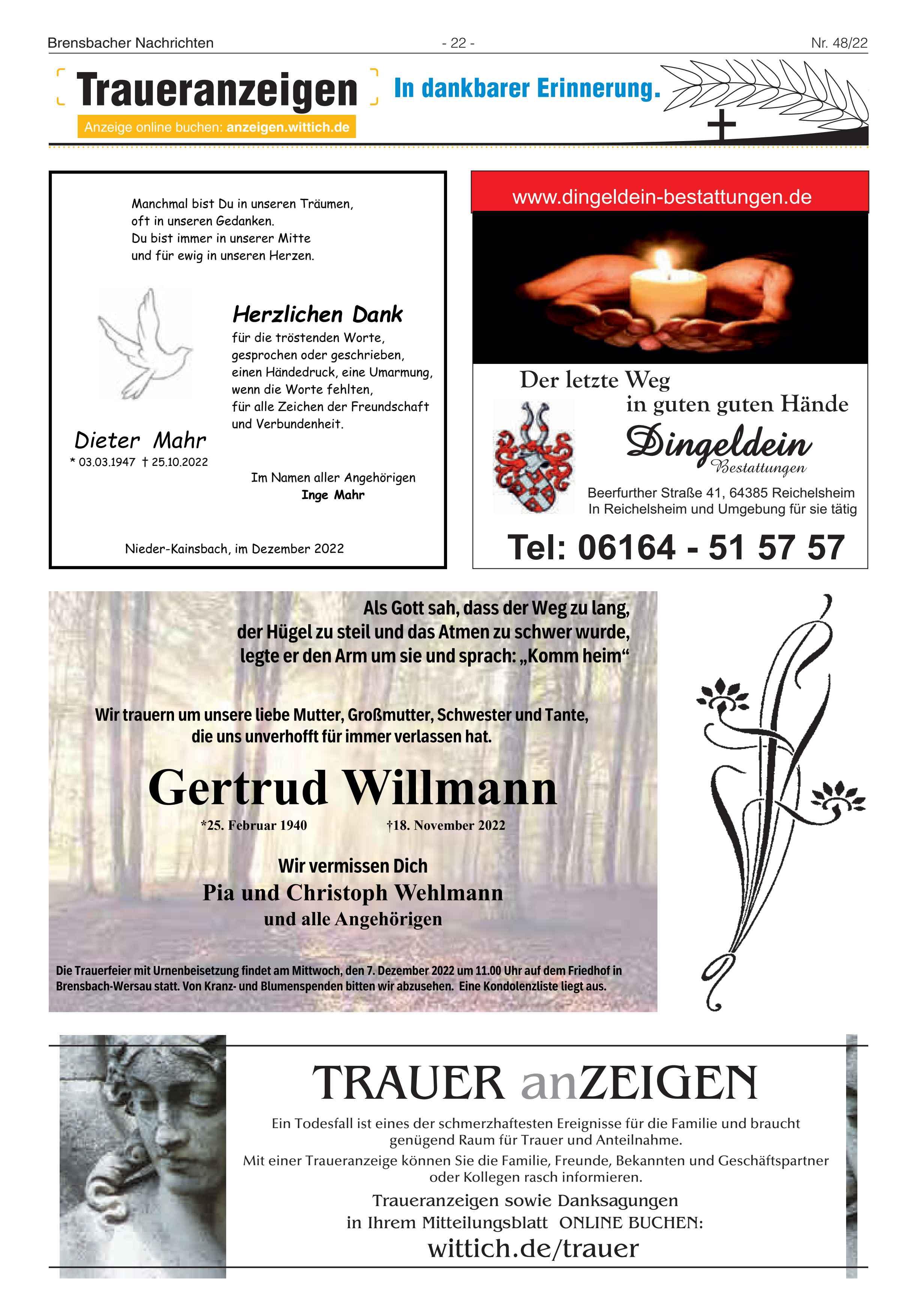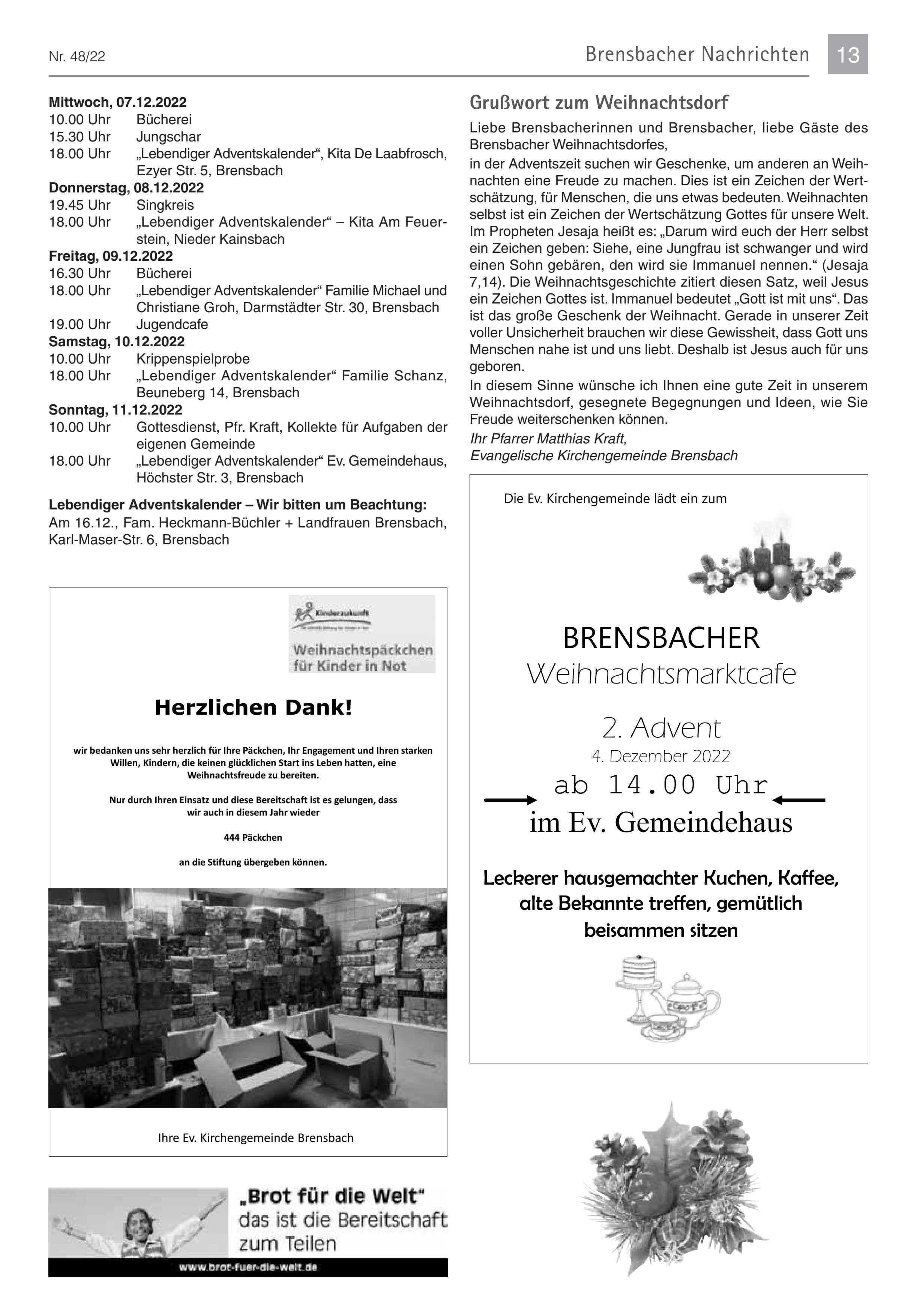 www.Brensbacher.de Nachrichten | Jahrgang 57 | Freitag, 2. Dezember 2022 | Nr. 48