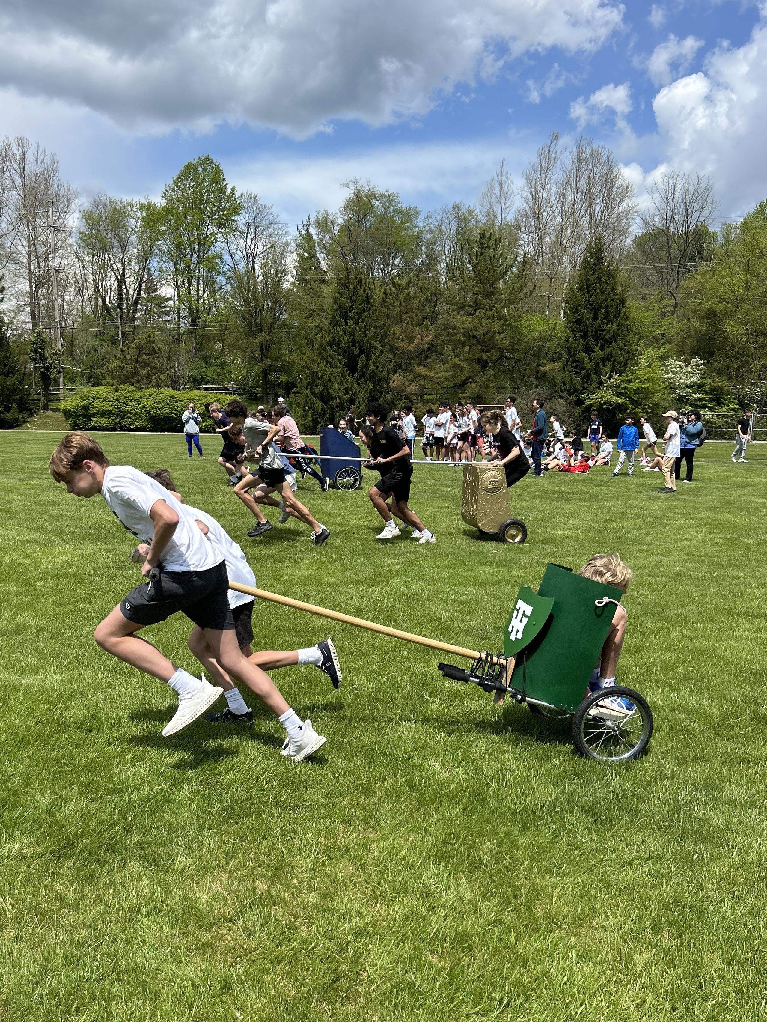 In seventh grade, students spend one semester in art and the other in woodshop. In art class, they practice plein air watercolor painting, design and construct three-dimensional plaster sculptures, and refine their skills in observational drawing, all while engaging with key topics in art history. In woodshop, students integrate creativity with engineering principles as they design and build CO₂ race cars, culminating in a community demonstration and race that highlights their craftsmanship, problem-solving and design skills.