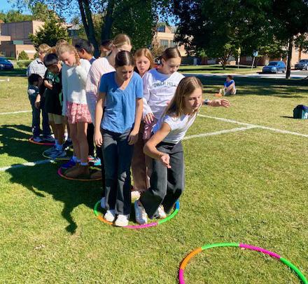 Fifth- and sixth-graders participate in a physical education course that meets every day with boys and girls separated for most classes. The course aims to help students become and remain physically fit, promote physical development through a variety of indoor and outdoor games, and introduce the team sports they will engage in as seventh- and eighth-graders. Additionally, the program emphasizes the importance of good sportsmanship, encouraging appropriate conduct, honest competition, and graceful acceptance of outcomes.