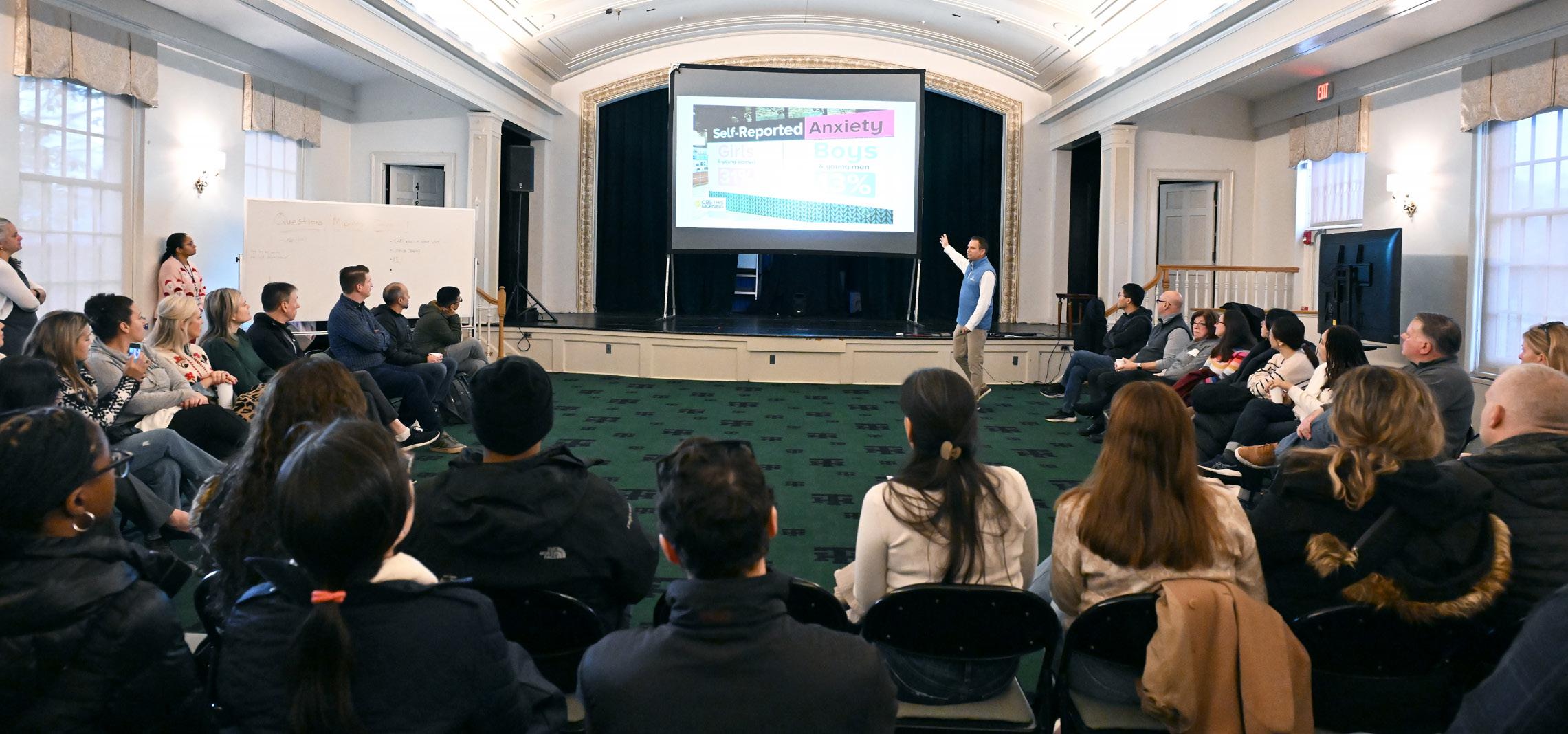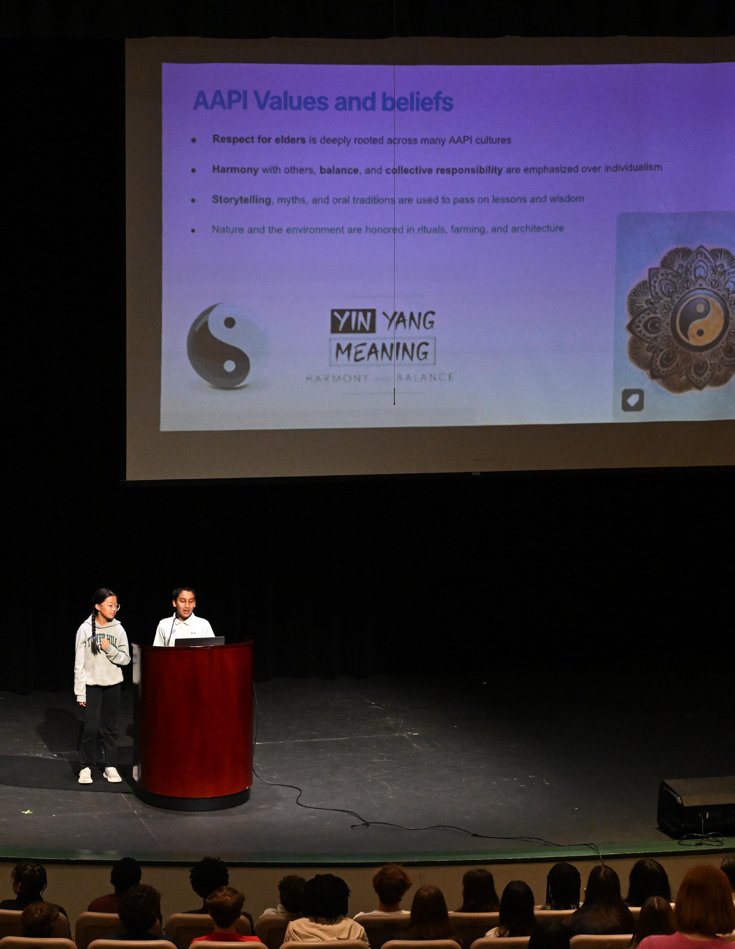 The Leaning into Equity Awareness and Diversity Conference is an opportunity for all of our seventh and eighth grade students to come together with seventh and eighth graders across the state for a single-morning conference. Each year, there is a theme based on a diversity, equity, accessibility, or inclusion topic relevant to the age group. Recent themes include identity, the importance of names, navigating the world with a mixedrace identity, and a variety of cultural performances. The purpose of the day is to provide windows for students to learn about experiences different from their own, mirrors for students to see themselves reflected in the conversations, and sliding glass doors for students to step out of our singular school bubble and interact respectfully with peers from other schools, developing the skills necessary to engage in courageous dialogue.