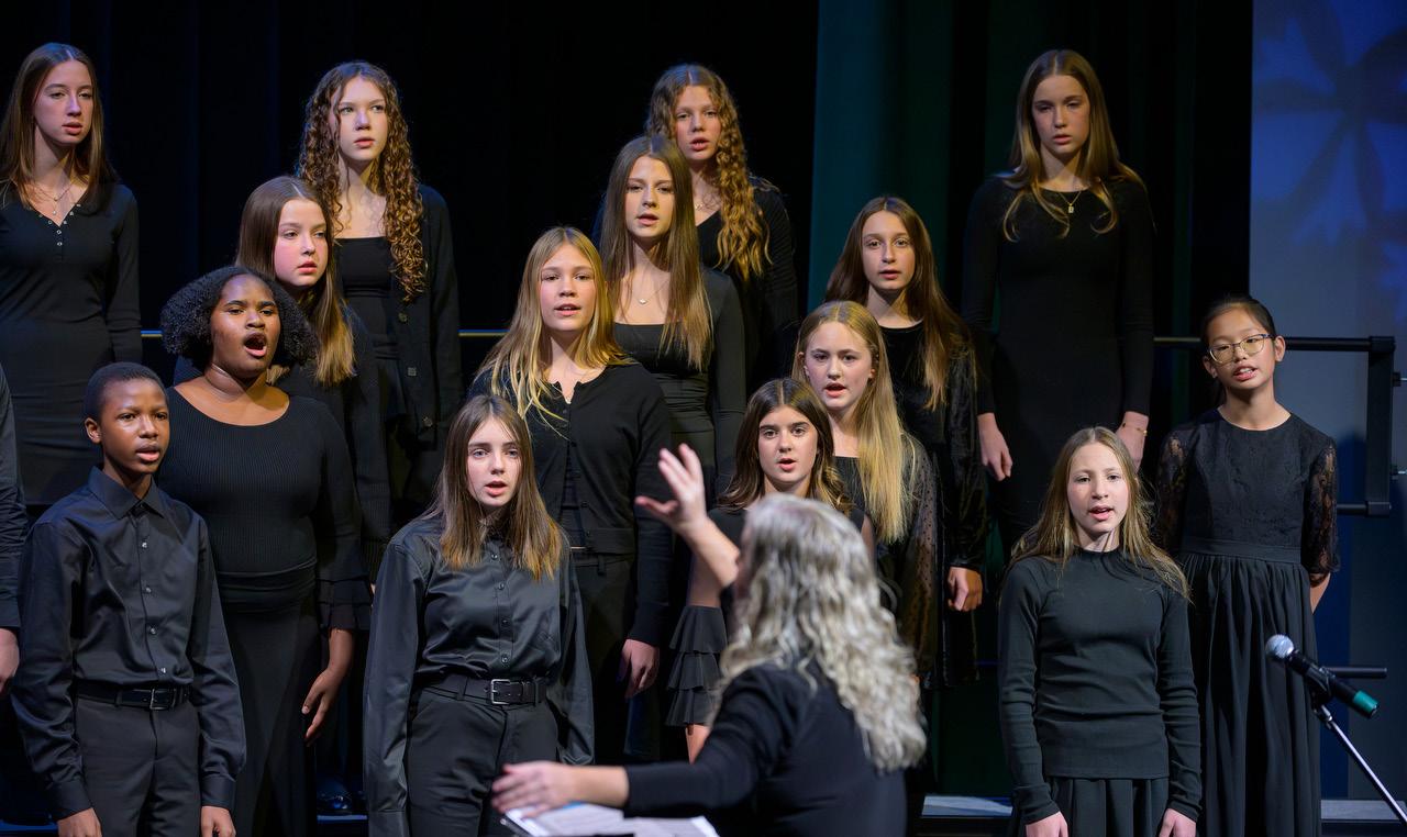 The Middle School chorus helps students develop strong, healthy singing voices while building music-reading skills and confidence as performers. Students learn proper posture, breath support, tone production and diction, as well as, how to sing in head, mix, and chest voice. Through daily practice in sight-singing, rhythm reading and solfege, students gain the skills to read and perform music independently. They explore a wide range of musical styles while singing in multiple languages and learning about music from the Renaissance to the present day. Performances, self-evaluations and group projects encourage teamwork, creativity, and artistic growth, preparing students for success in Upper School choirs and a lifelong love of music.