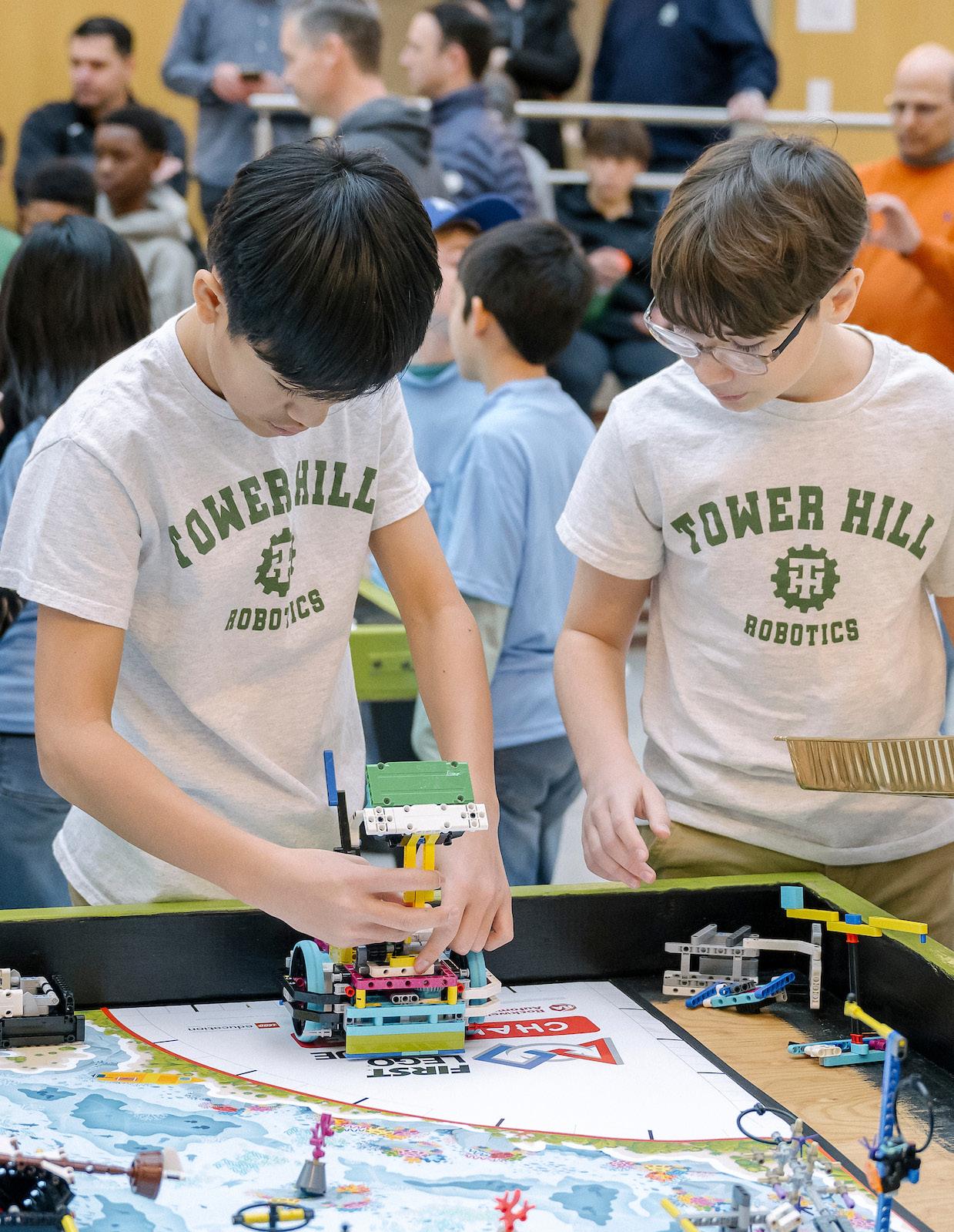 Beginning in October, fifth- and sixth-grade students take part in Math Hoops, a fast-paced game that combines basketball excitement with math skills. Players use “player cards” to compete in an in-house tournament for the coveted Math Hoops Cup, and top performers will go on to represent Tower at the regional competition in January.