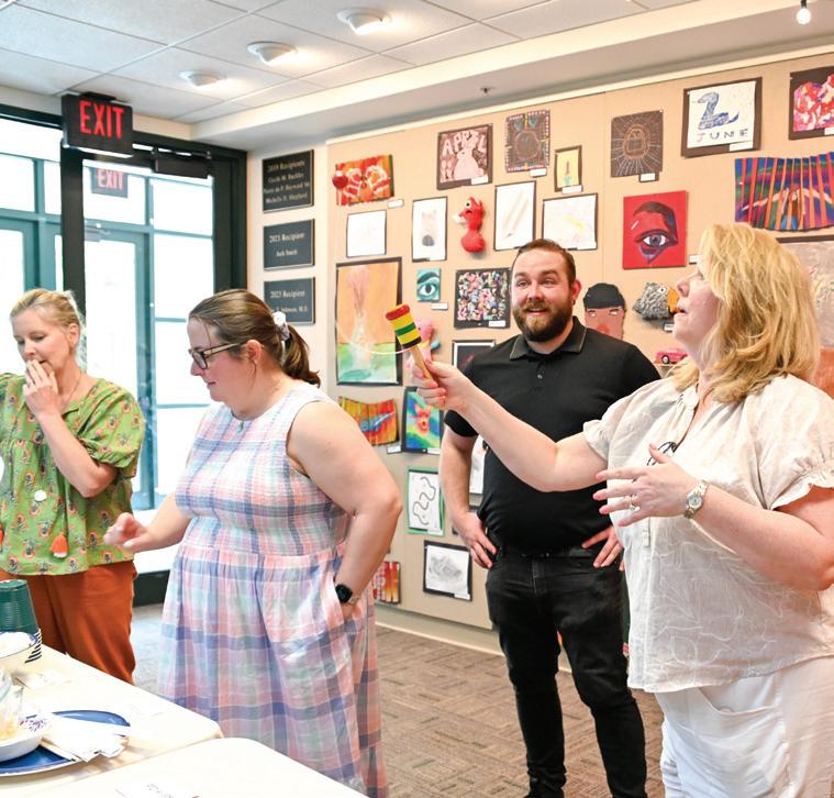 The faculty know Mr. Mo is a helpful, communityminded colleague. During the 2023-2024 school year, along with his students, Mr. Mo created the set design for the second and fourth grade plays, painted the free little library with help from first grade, helped design a Rangoli with parents to celebrate Diwali, and collaborated with PreK on a Jaune Quick-to-See Smith mural. Working with a group of Lower School science students, he also helped create celebratory bracelets for the highly anticipated 2024 eclipse. Additionally, Mr. Mo initiated a second grade drawing club after school.