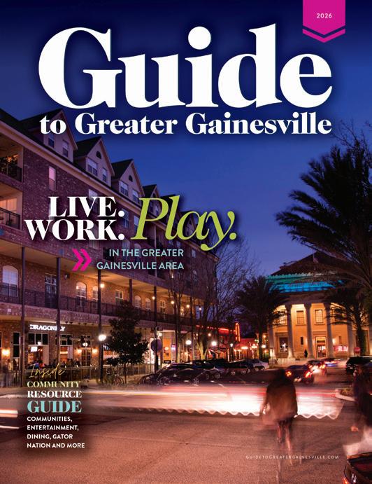 to GUIDE to Greater Gainesville, a reflection of that balance. Inside, you’ll find some of the best places to eat, shop, explore, and experience everything our area has to offer. But it’s more than that, it’s a reminder of why we love where we live. From incredible public and private schools to nationally recognized healthcare systems, from pristine natural beauty to a top 10 university – the Greater Gainesville area has it all!