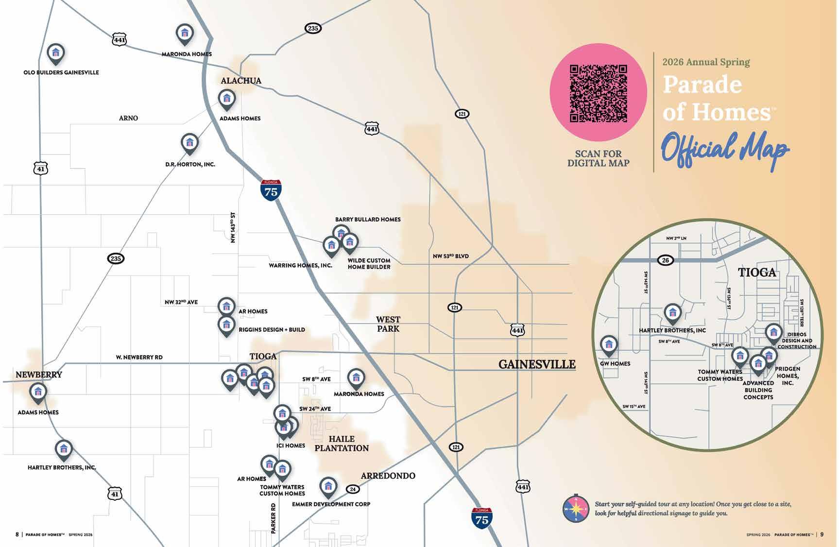 Welcome to the Annual Spring Parade of Homes™! Since its debut in 1958, the Parade has showcased more than 2,225 homes across 340 neighborhoods throughout Alachua County and the surrounding areas. For decades, the Parade of Homes™ has given residents a unique opportunity to explore the latest innovations in home design, discover thoughtfully planned communities, and see firsthand the newest advances in energy-efficient building techniques.