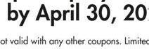 Couponisvalidforone-�sl me ue ony.Cos uponha nocaueshval.Noadjustmentsadeon cnbema previoushases.purc