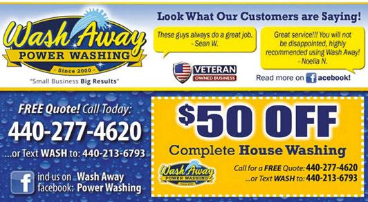 ONESTORY STARTING AT $149 TWO STORY STARTING AT $175 EXTERIORONLY UP TO 22 $154 INTERIOR&EXTERIOR UP TO 14 $154 WINDOWS WINDOWS CONCRETE OR DECKS STARTING AT $175 HOUSEWASH STARTING AT $249 DIRTY WINDOWS? DIRTY SIDING? 440.399.2500 • WindowGenie.com MULTI-SERVICE DISCOUNTS Gutter Clean-Out Pressure Washing WindowCleaning CALL FOR DETAILS. CALL FOR DETAILS. CALL FOR DETAILS. WindowTinting STARTING AT $199 CALL FOR DETAILS.