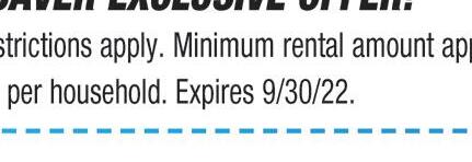 Couponmustbe presentattime ofwork& cannotbe combined. One couponperhousehold Esxpire9/30/22
