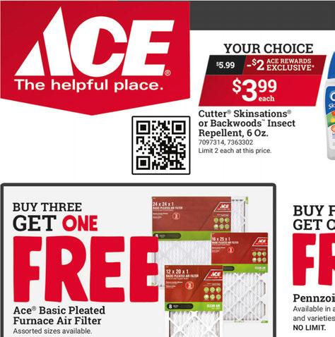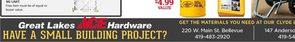 BELLEVUE • CLYDE • GREEN SPRINGS Published By Town Money Saver, Inc. Corporate O ce • PO Box 356 • Lucas, OH 44843 © 2023 Town Money Saver, Inc. All rights reserved. For advertising information, call 419.798.4912 NEXT ISSUE IN HOMES: June 29, 2023 ADVERTISING DEADLINE: June 14, 2023 PRSRT STD ECRWSS U.S. POSTAGE PAID Town Money Saver, Inc. townmoneysaver.com SCAN FOR MORE DEALS! Or visit acehardware.com