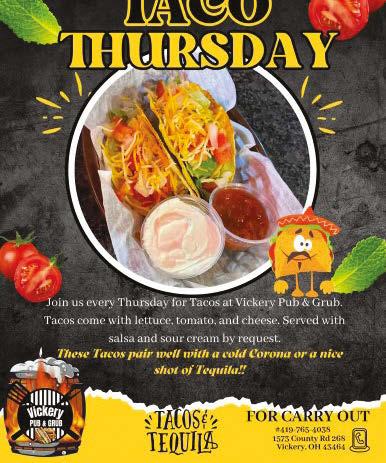 Monday, Wednesday & Thursday Specials 1573 County Rd. 268 Vickery, OH 419-765-4038 Featuring Backyard Bands Summerall long Smashburger Wednesdays