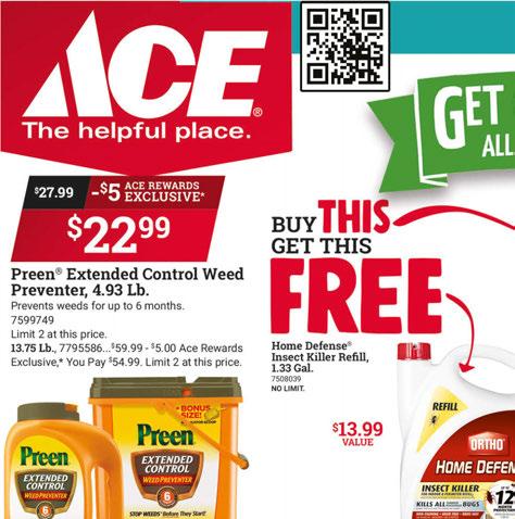 Support LOCAL businesses! Shop local. Drive less. Save more. BELLEVUE • CLYDE • GREEN SPRINGS May 2023 MANY MORE ITEMS ON SALE! STOP IN AND CHECK IT OUT! SCAN FOR MORE DEALS! Or visit acehardware.com