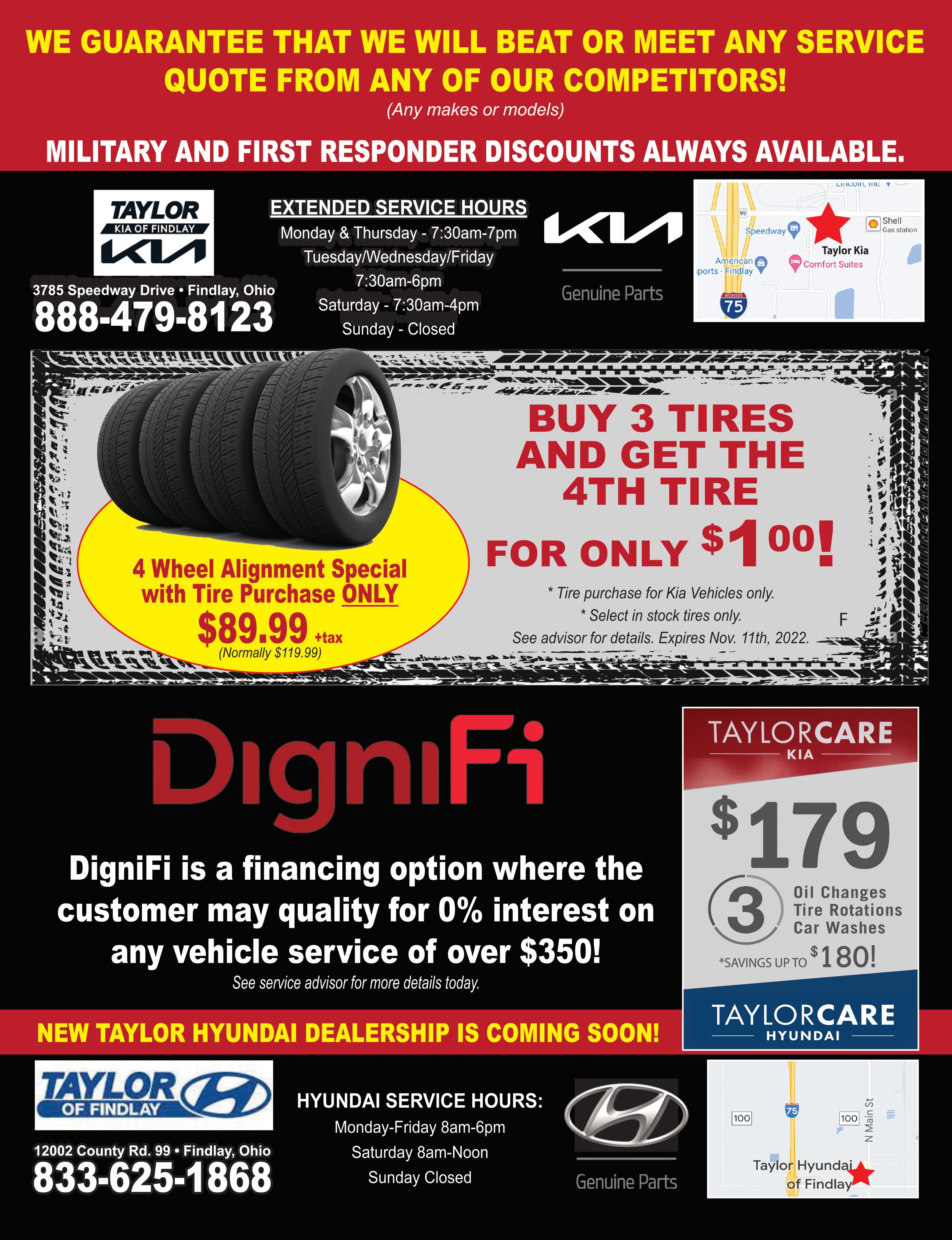 BRINDLEʼS Interior Designer CHECK OUT OUR FACEBOOK PAGE FOR UNBEATABLE DEALS EACH WEEK! WEEKLY SAVINGS WINDOW TREATMENTS • SPECIALIZING IN BLINDS & DRAPERIES • WE DO OUR OWN INSTALLATION HOLIDAY GIFT FOR YOUR HOME AND FOR YOURSELF STILL TIME TO ORDER AND INSTALL MANY OF OUR CUSTOM WINDOW TREATMENTS FOR THE HOLIDAYS. YEAR END SUPER SAVINGS CRAFTSMASTER SOFA FLOOR SAMPLES SAVINGS UP TO 40% GO TO OUR FACEBOOK PAGE FOR LISTING 1100 Croy Drive, Findlay 419-422-4451 brindlesfurniture.com New Findlay Showroom 1100 Croy Dr. 567-525-3017 Monday - Friday 10am-5pm 112 Lagrange St., Findlay • FREE Computer Scan • Computer Diagnostics • Car & Light Truck Detailing • Cooling System Repair • Steering & Suspension • Oil Changes • Tire Rotation • Brakes 12,000 or 1 Year Call ahead for convenience. Most cars and light trucks. With coupon. Expires 11/15/22 Synthetic Blend Oil & Filter Change 26$ 95 FREE Tire Rotation & Safety Inspection Call ahead for convenience. Most cars and light trucks. With coupon. $3 disposal fee. Expires 11/15/22 Includes labor Brake Pads Replaced 79$ 95 Pads & Rotors $300 per axle Call ahead for convenience. Most cars and light trucks. With coupon. Expires 11/15/22 ® ® Change PLUS FREE multi point inspection 89$ 99 Regularly $99.99 Caught you looking! This spot could be yours! Call Dianna at Town Money Saver® 419-680-6701 and let all of Findlay see your spot.